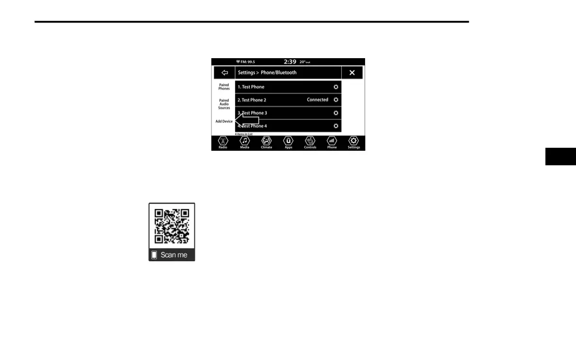 Press the Paired Phones button or the Add Device