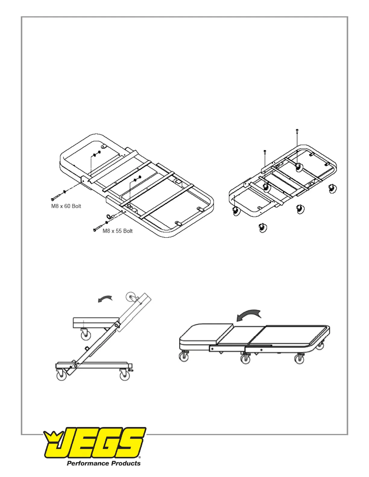 Before assembling your Folding Creeper, make sure all parts are present. If any part is missing or damaged, do not