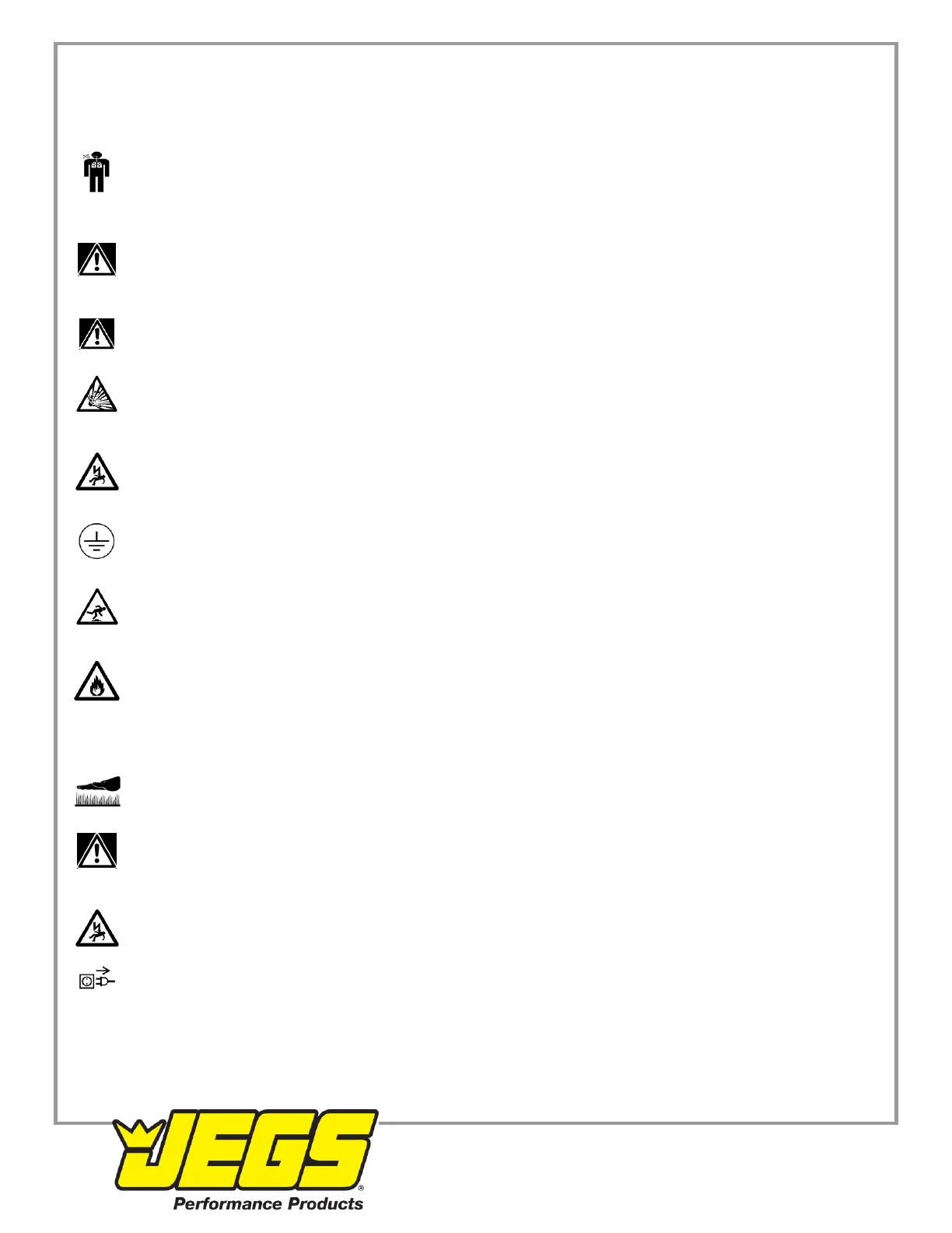 cut or otherwise damaged cables and leads. Do not stand, lean or rest on ground clamp. Do not stand in water