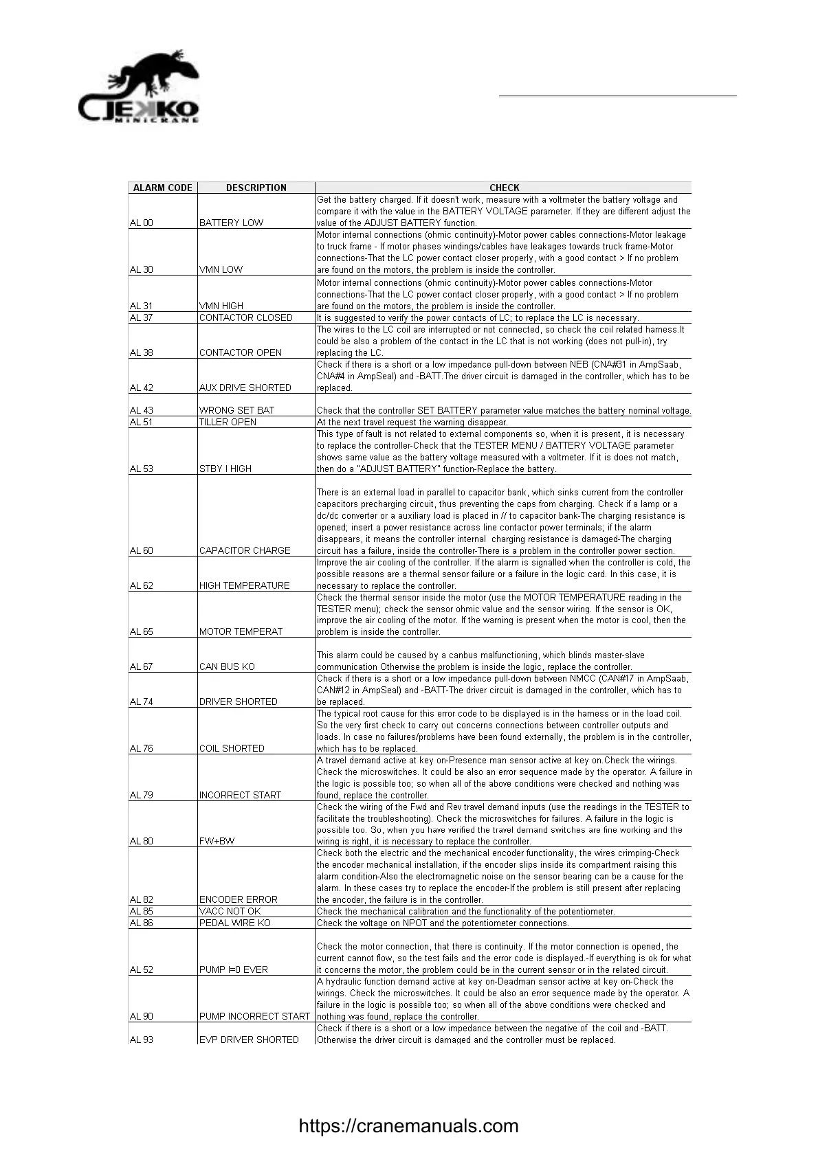 JEKKO MPK20 - Alarms Battery Level and Controller MDI