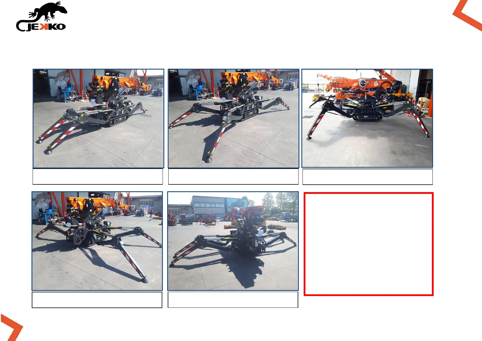 Possible outriggers opening angles: 0° - 20° - 47° - 68° - 90°.