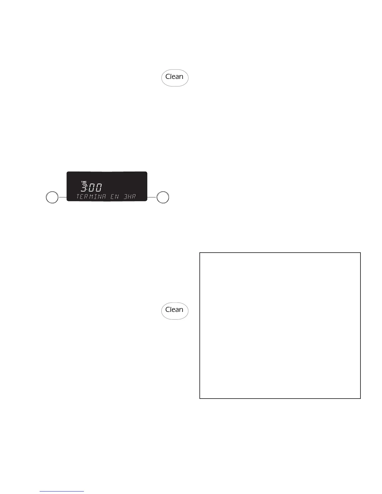 el conteo regresivo de la autolimpieza se desplegarán en pantalla