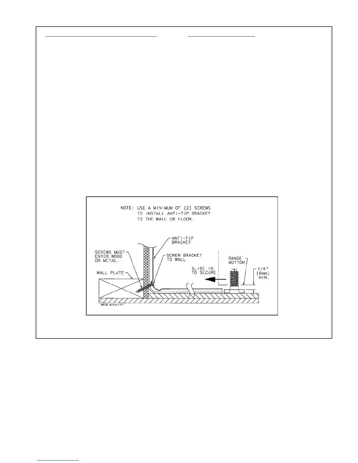 is not available). Securethe ANTI-TIP bracket to the