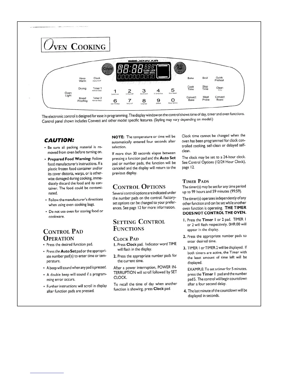 Jenn-Air JES9800AAS - Use Information (Models JES8750 AA*, JES8850 A**) - OVEN COOKING; CAUTION; CONTROL PAD OPERATION; CLOCK PAD