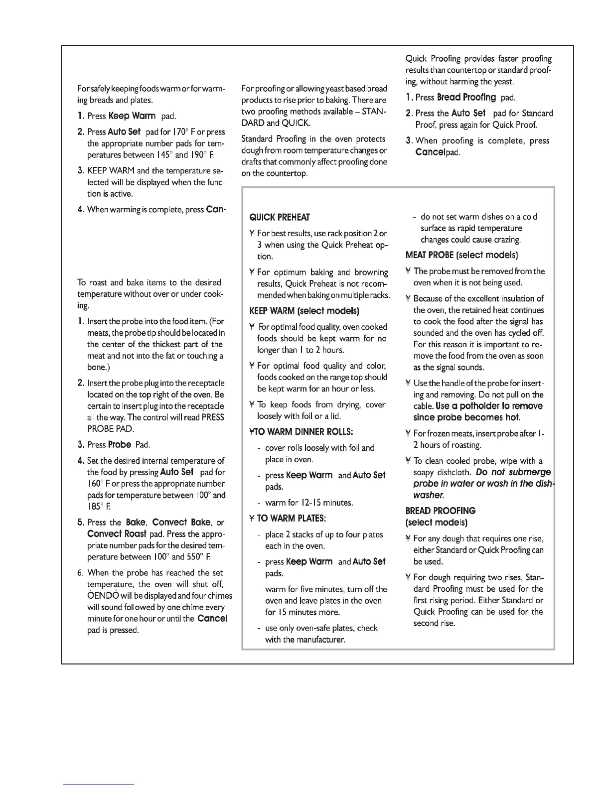 Jenn-Air JES9800AAS - OVEN COOKING; KEEP WARM PAD; BREAD PROOFING PAD; MEAT PROBE PAD