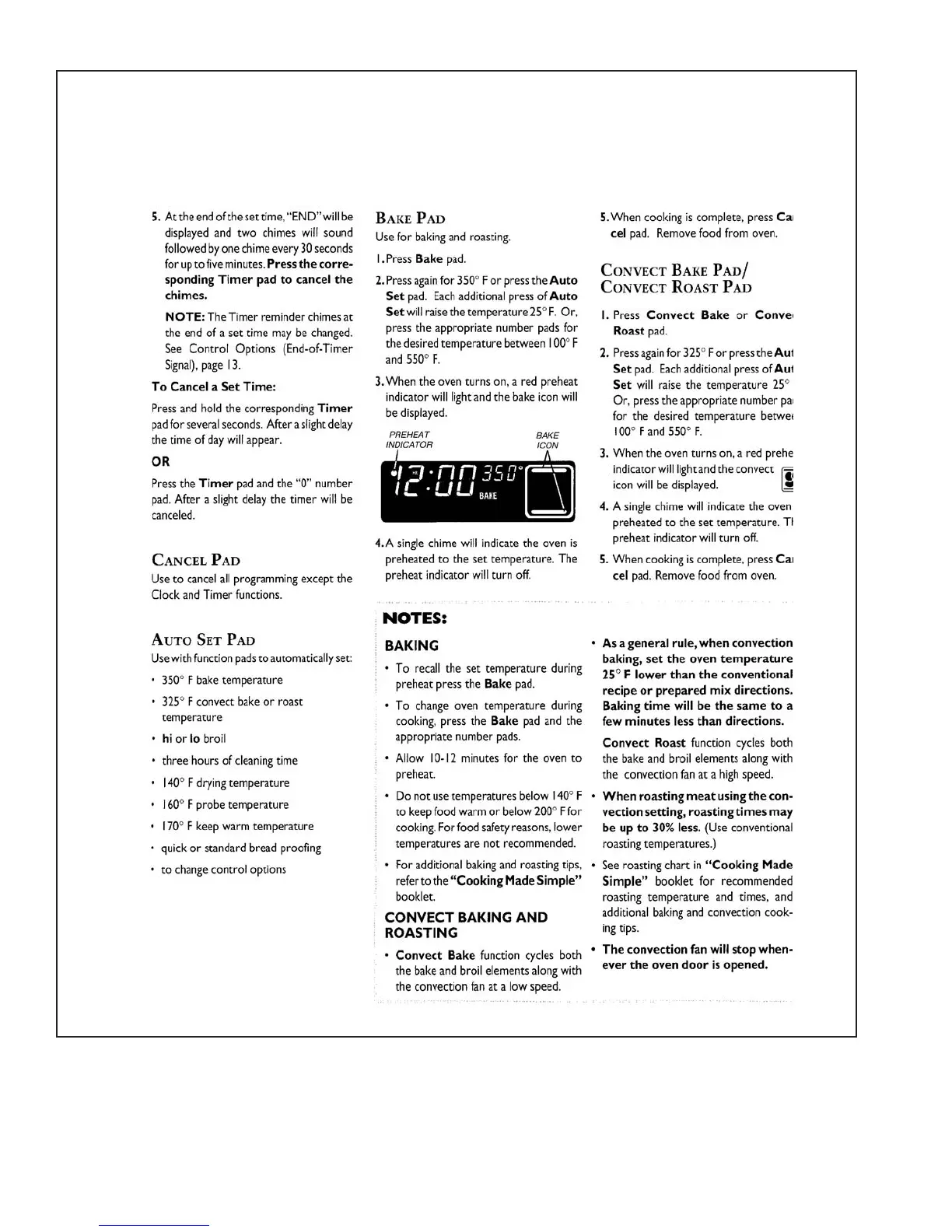 seconds.Afteraslightdelay PREHEAT BAKE 100°Fand55 ° .