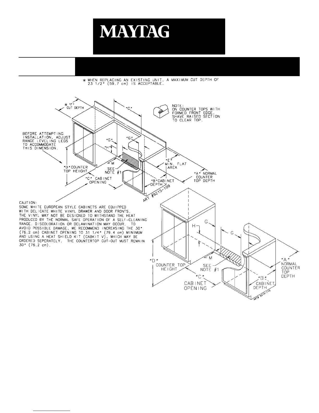 IMPORTANT: Because of continuing product improvements, Maytag reserves the right to change specifications