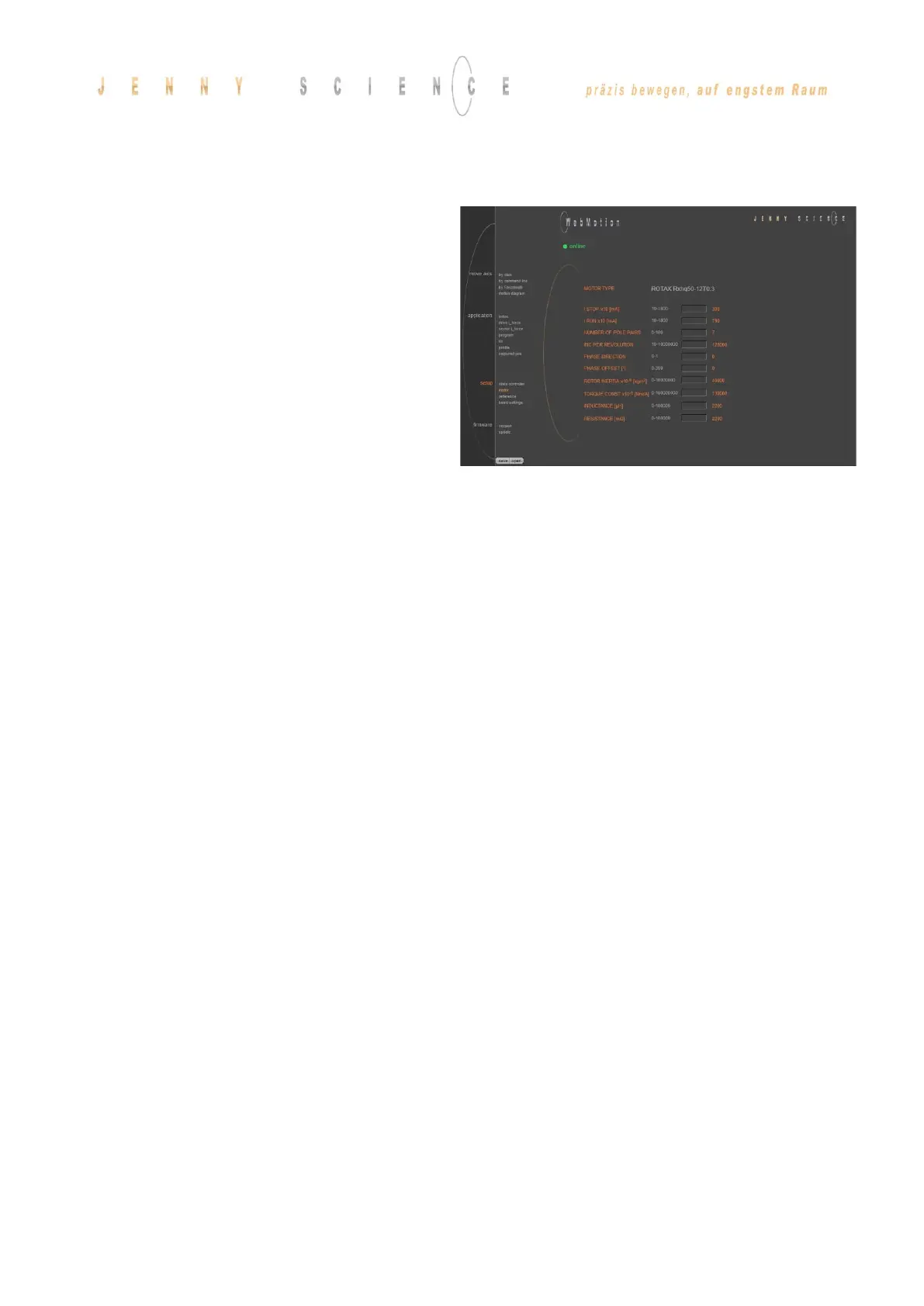 Rotor moment of inertia of the motor, with factor 10