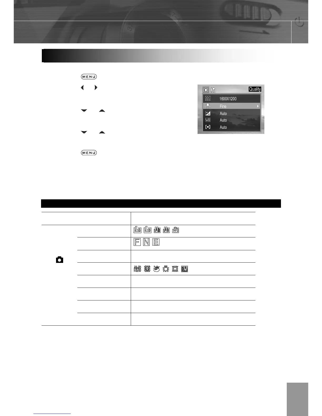 This chart shows the options for each menu settings.