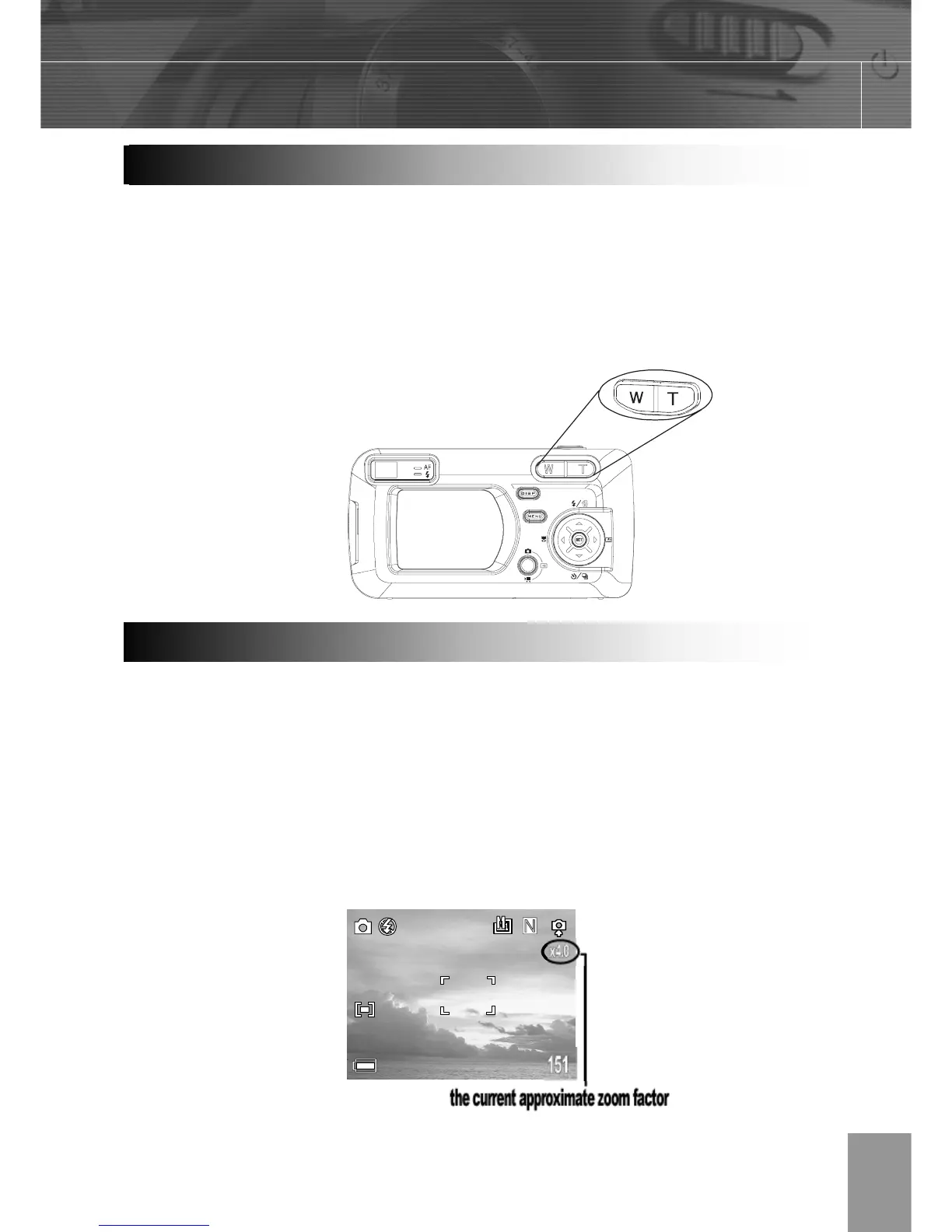 and press it toward again to further zoom the image digitally. The zoom indicator shows