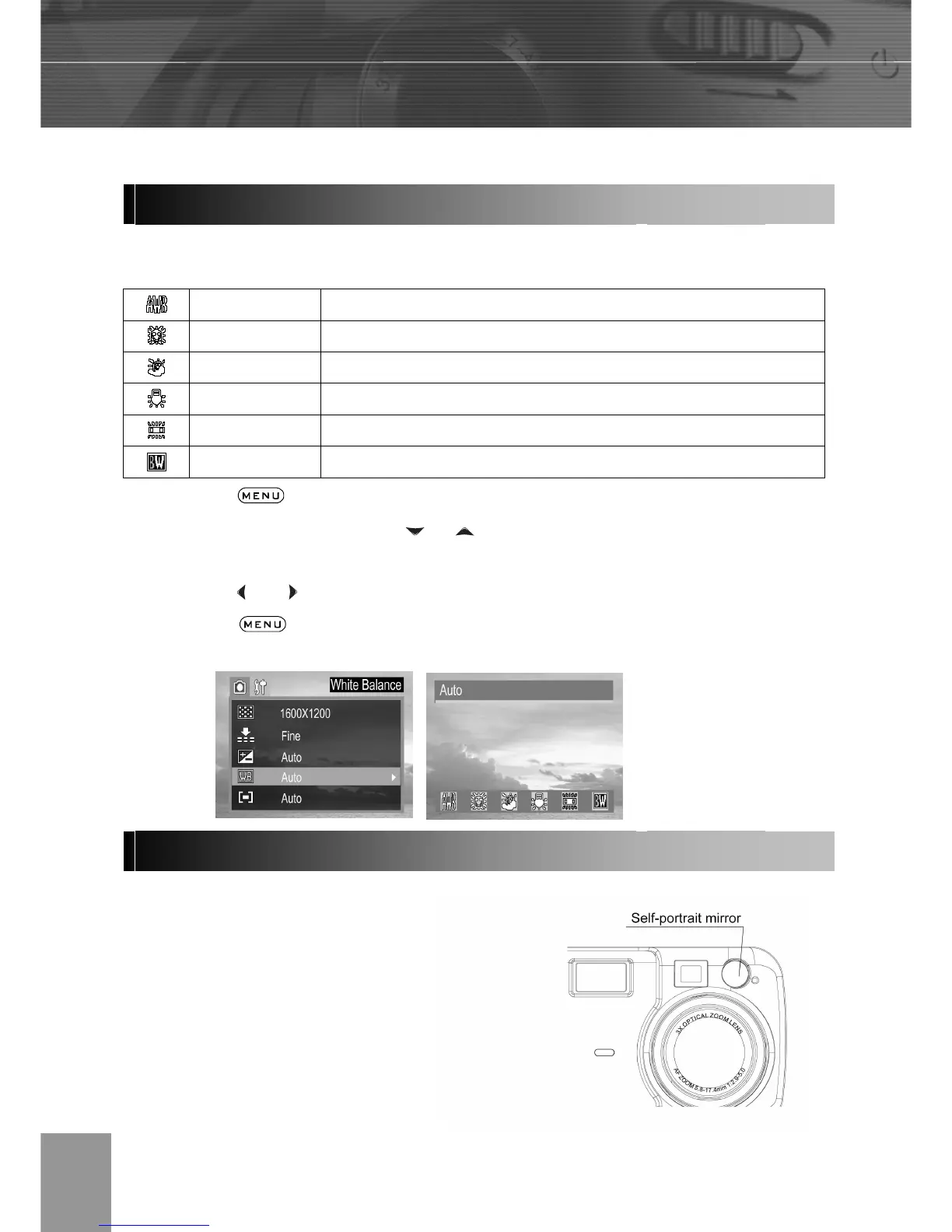 or arrow to select white balance then press