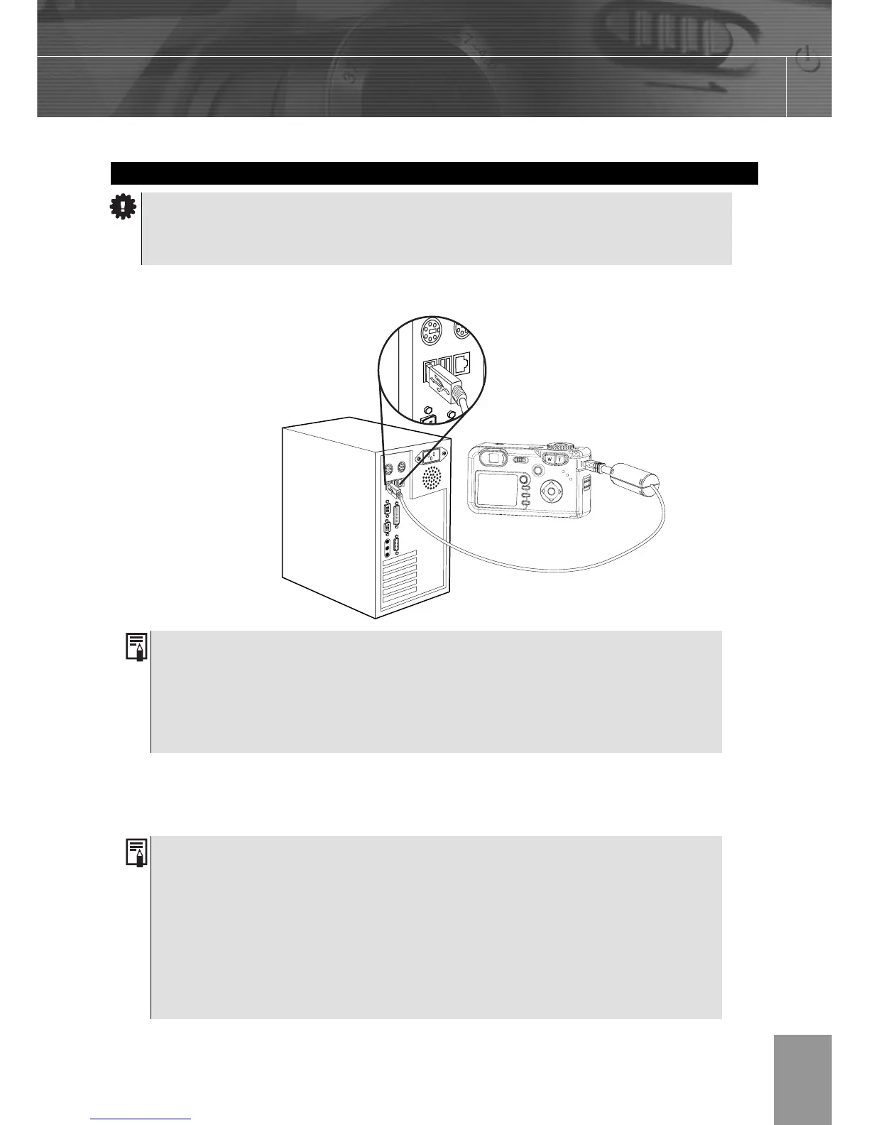 Connect the supplied USB interface cable to the computer’s USB port and the camera’s