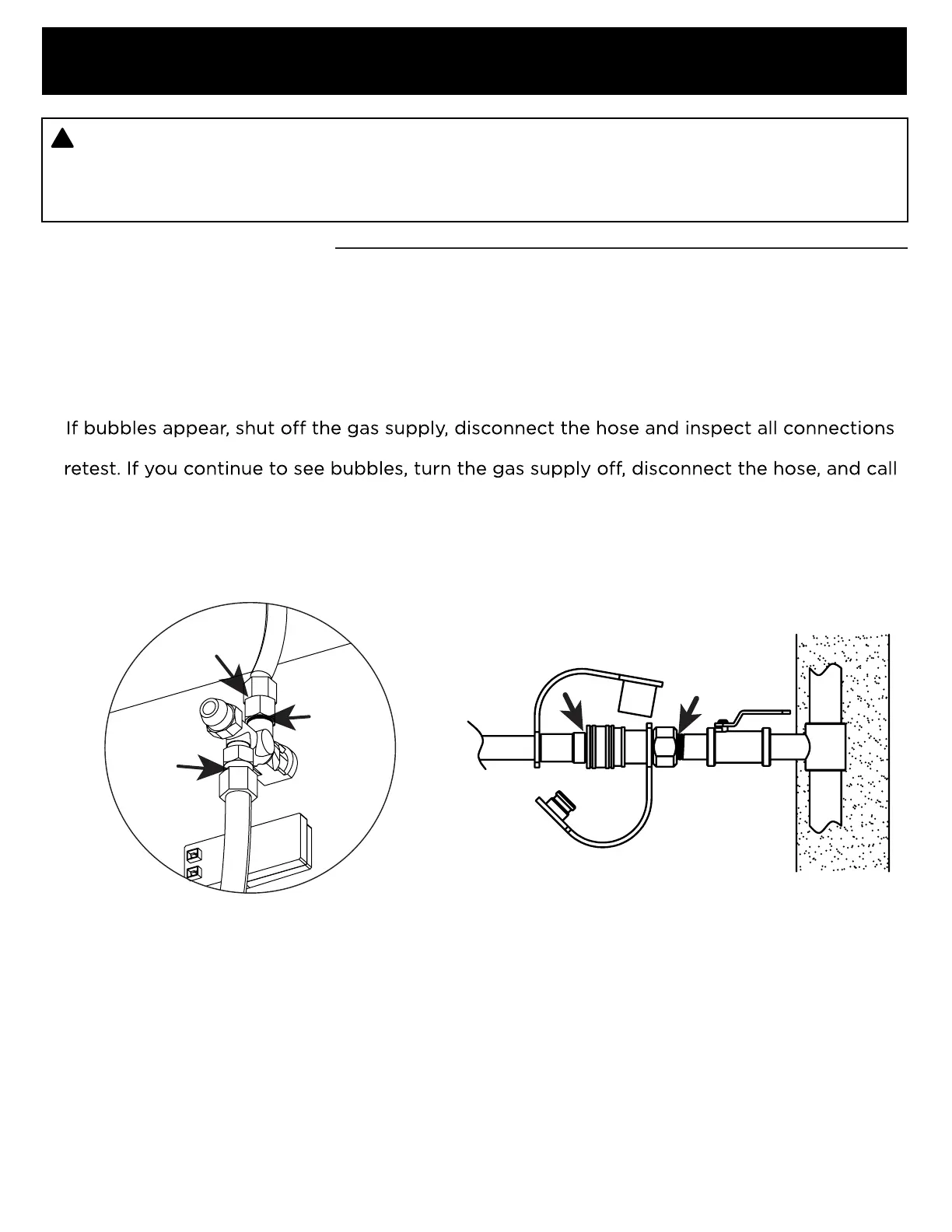 making sure threads are clear of debris. Reconnect the hose, turn the gas supply on and
