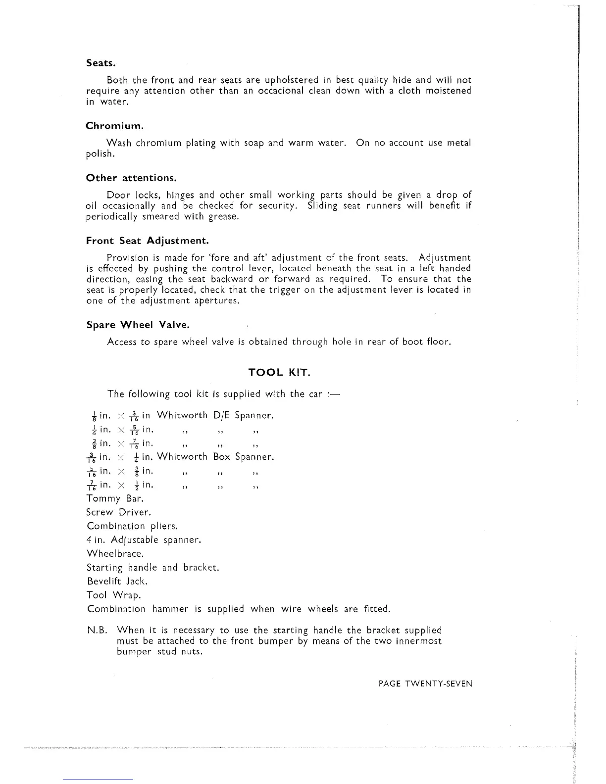 N.B. When it is necessary to use the starting handle the bracket supplied