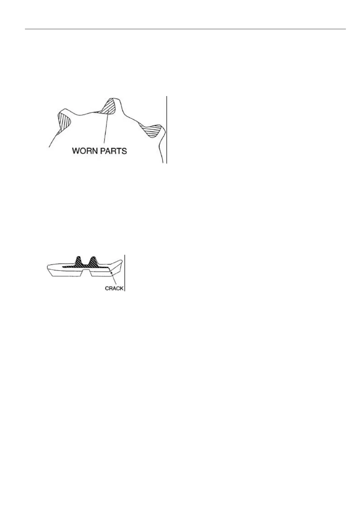 Cracks on the outside surface of the track (the surface in contact with the terrain) are often