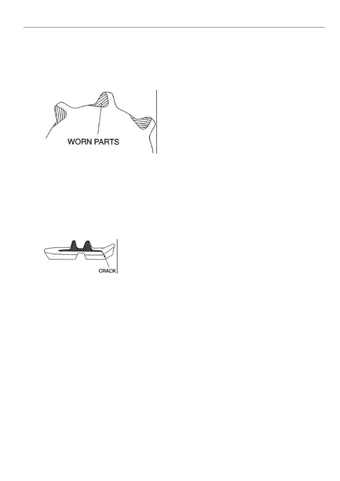 Cracks on the outside surface of the track (the surface in contact with the terrain) are often