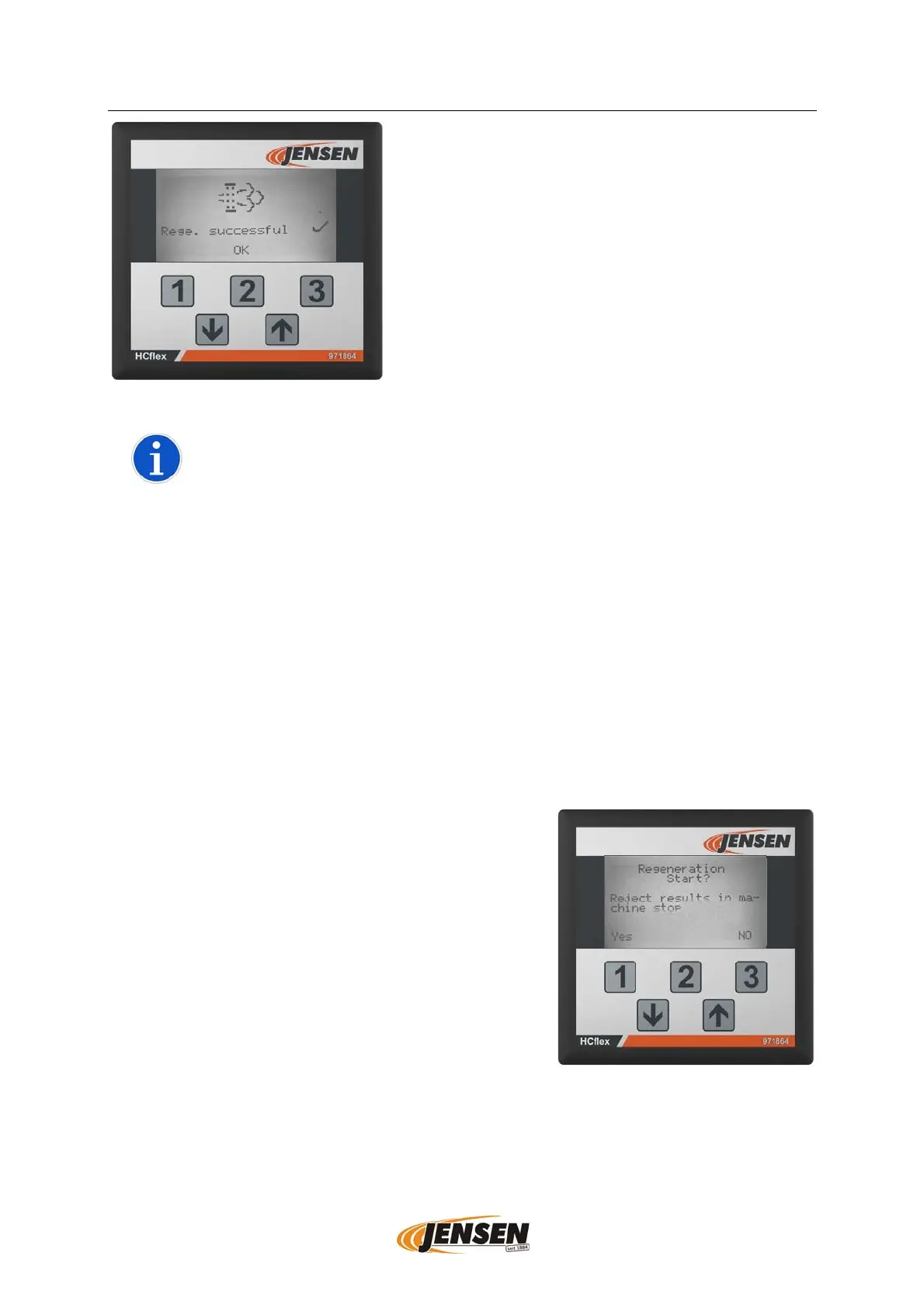 If parked regeneration is required, this is shown on the HCflex (see