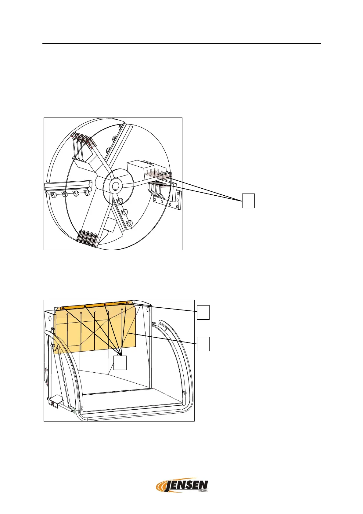 To replace the rubber curtain remove the nuts (3), replace the rubber curtain remount