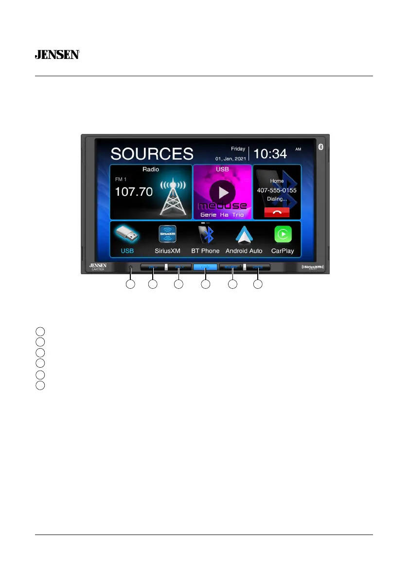 Jensen CAR710X - Control Locations; Touchscreen Functions