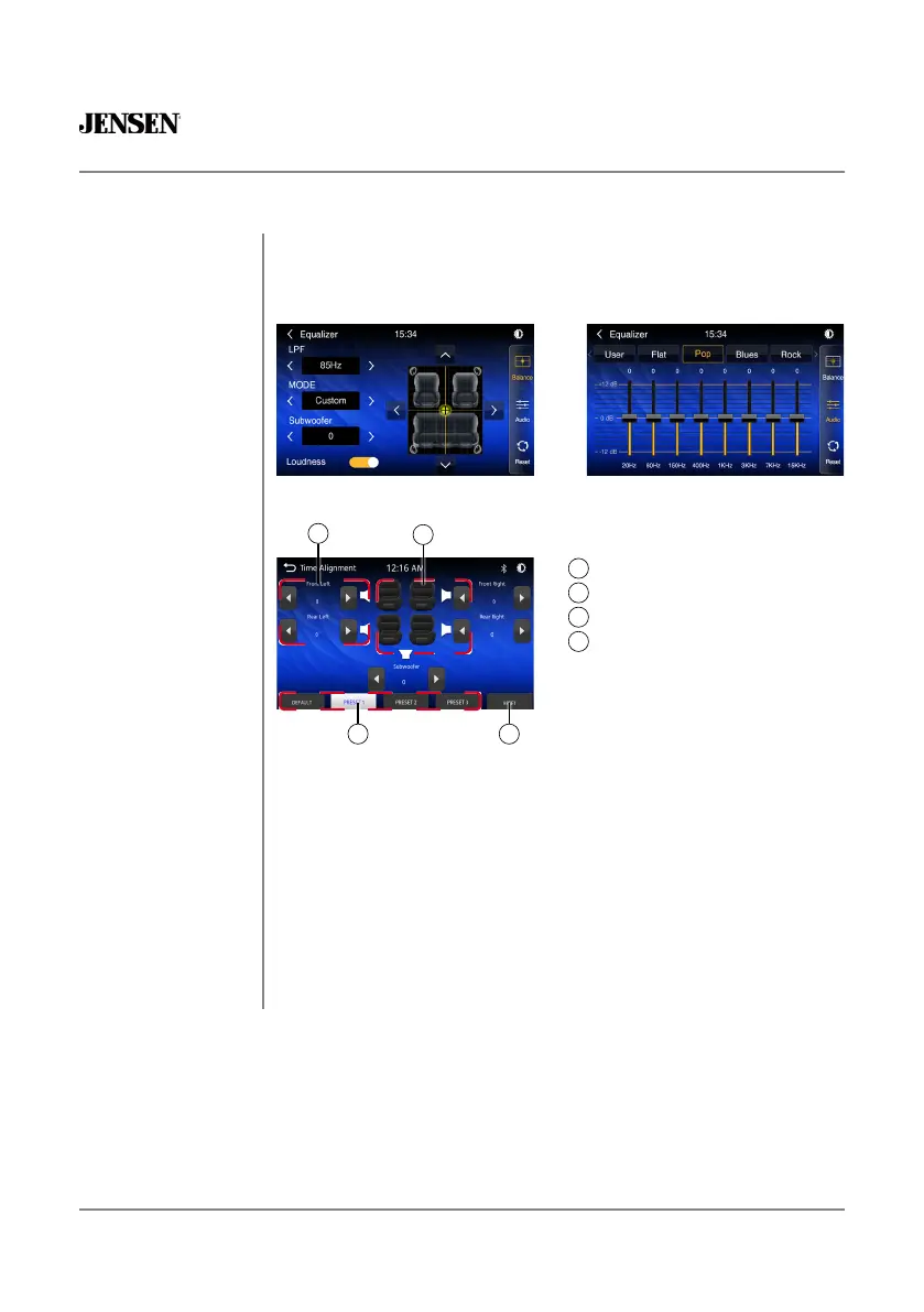 main menu screen to adjust Fader and Balance controls, Equalizer