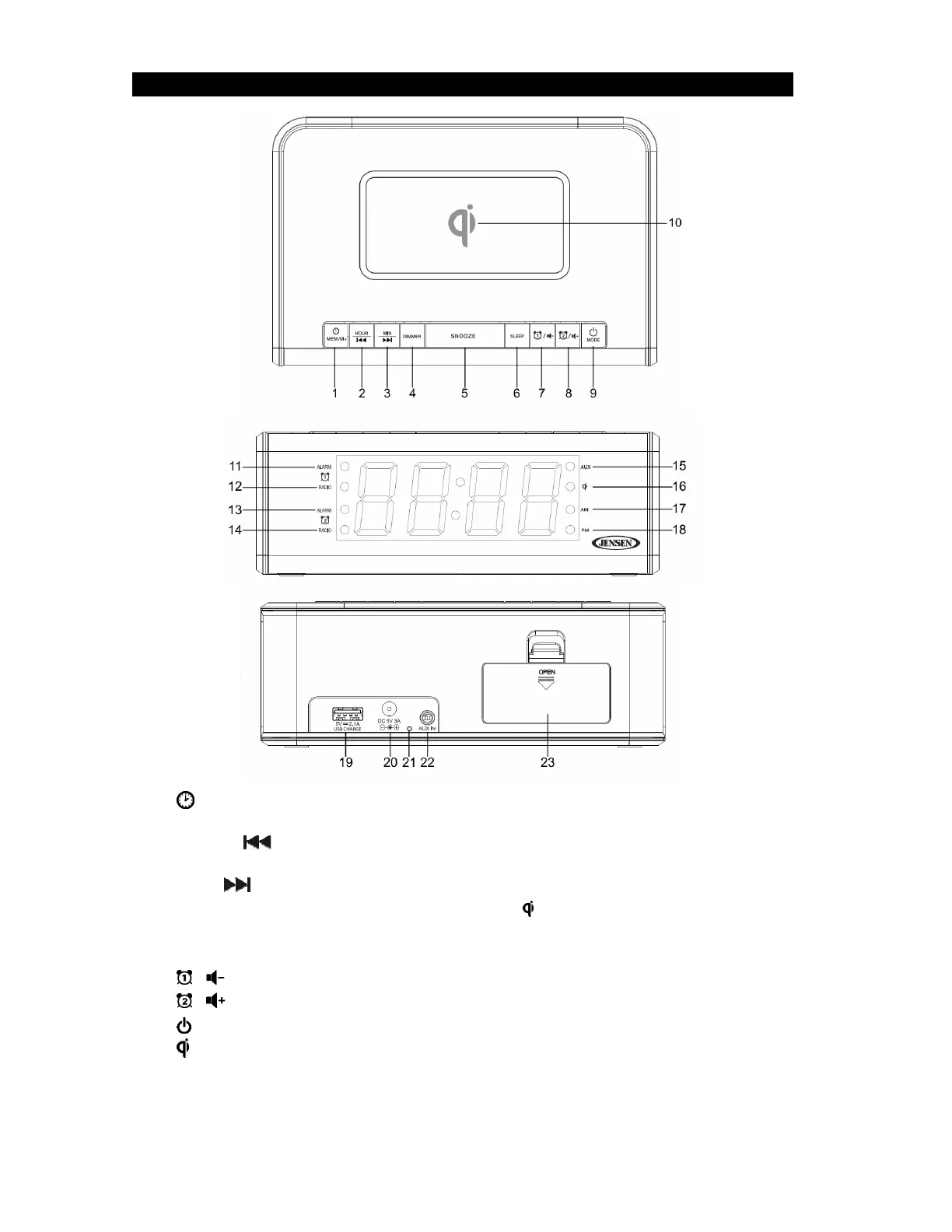 5 SNOOZE BUTTON 17 AM INDICATOR
