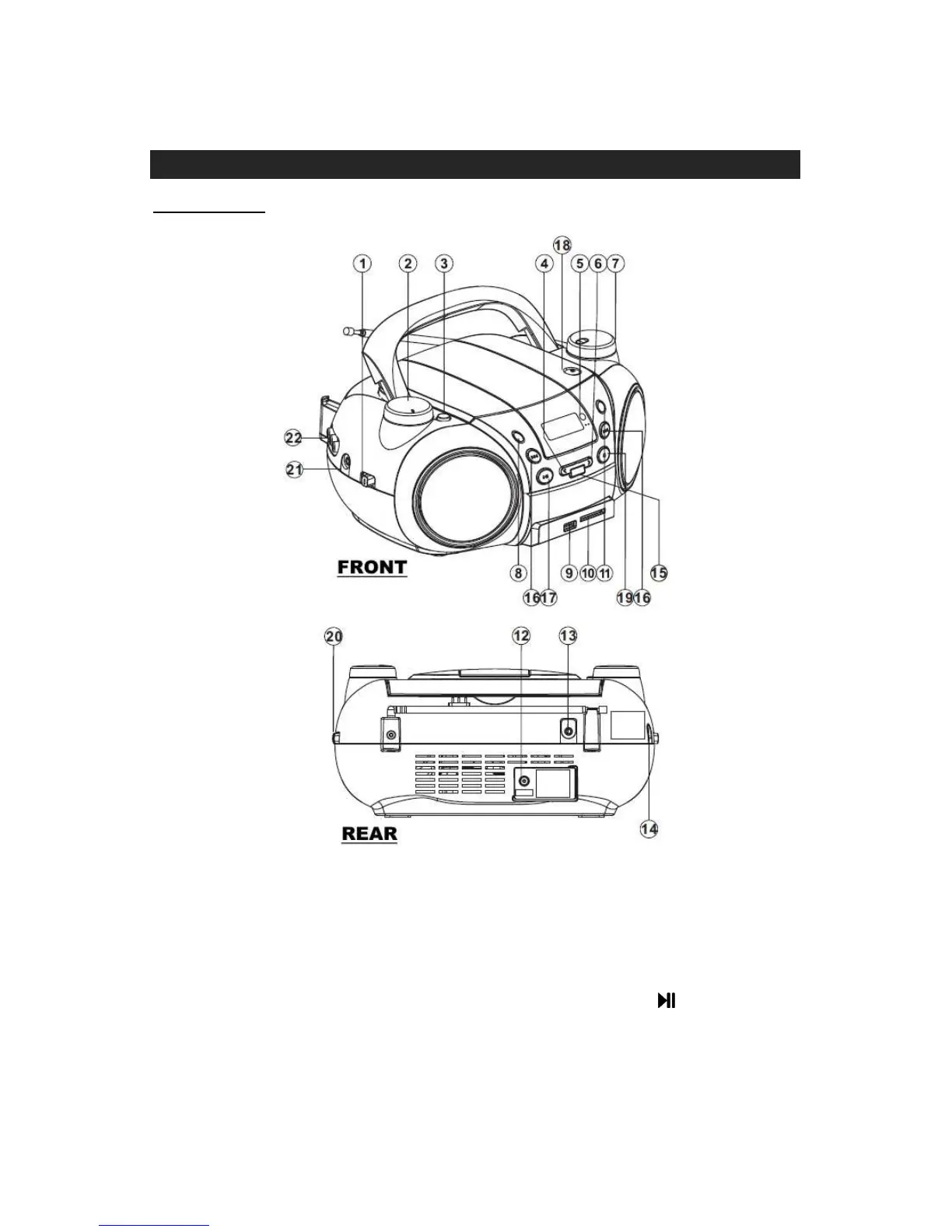 3. POWER Button 14. LINE IN (AUX IN) Jack