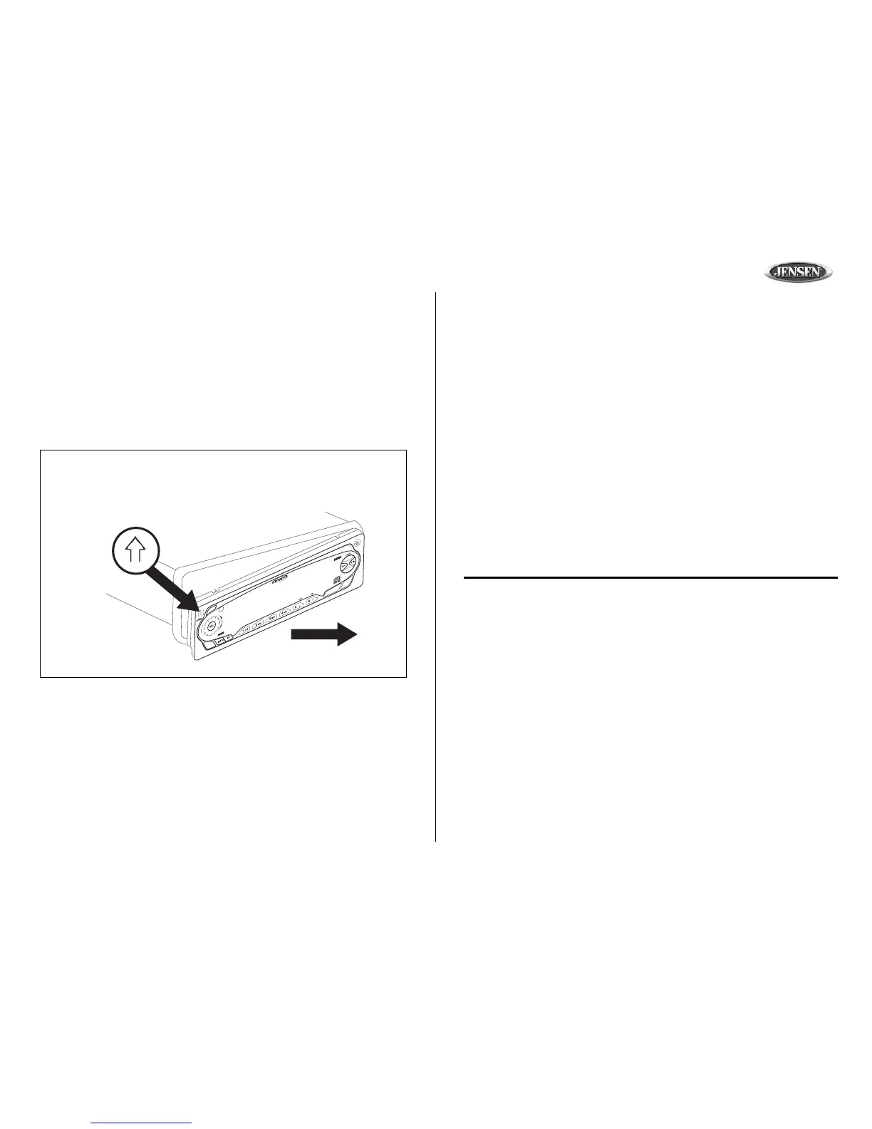 avant pour enlever. Pour réinstaller, glissez le bon bord du panneau avant dans la radio et