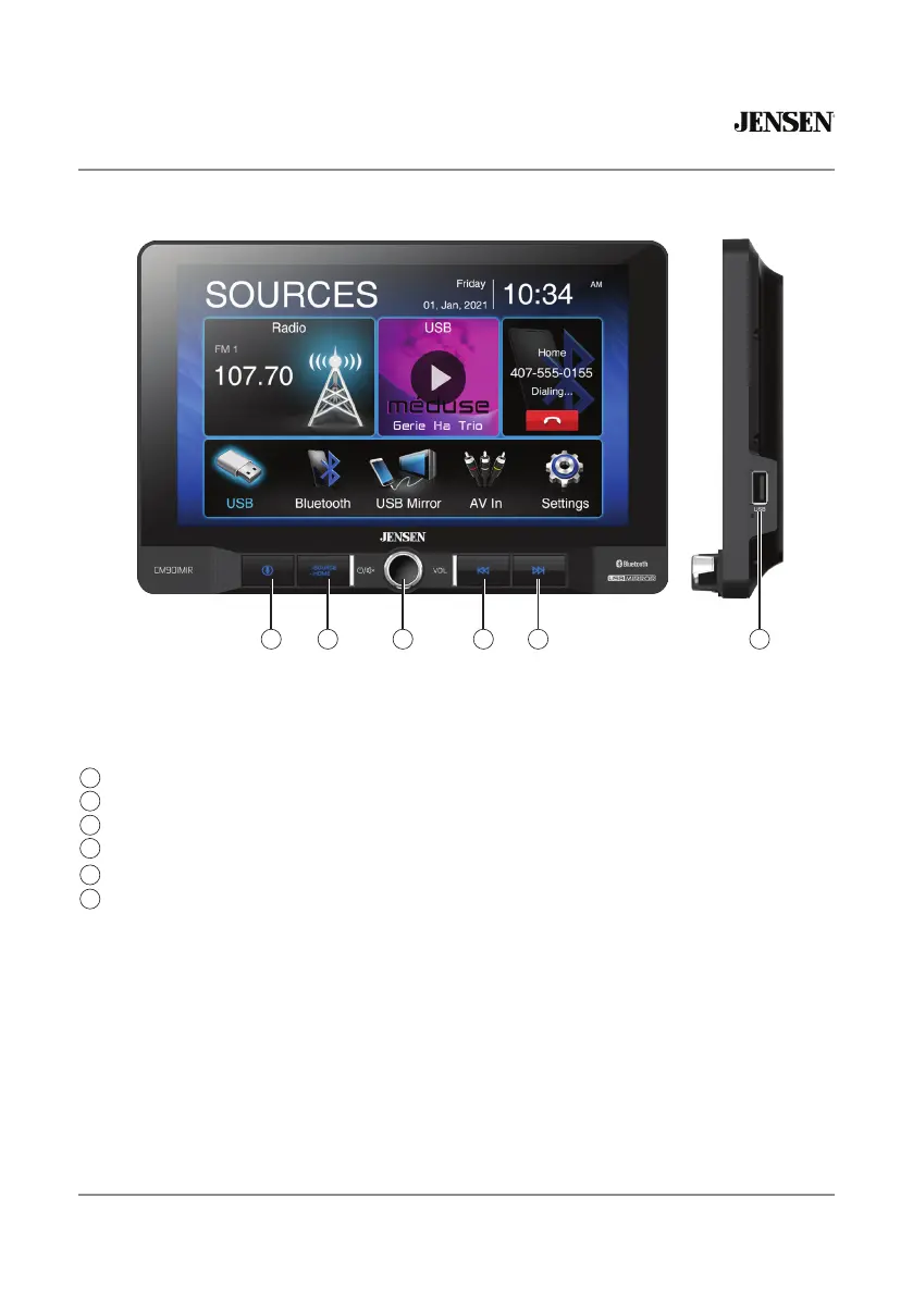 Jensen CM901MIR - Control Locations; On-Screen and Front Panel Controls