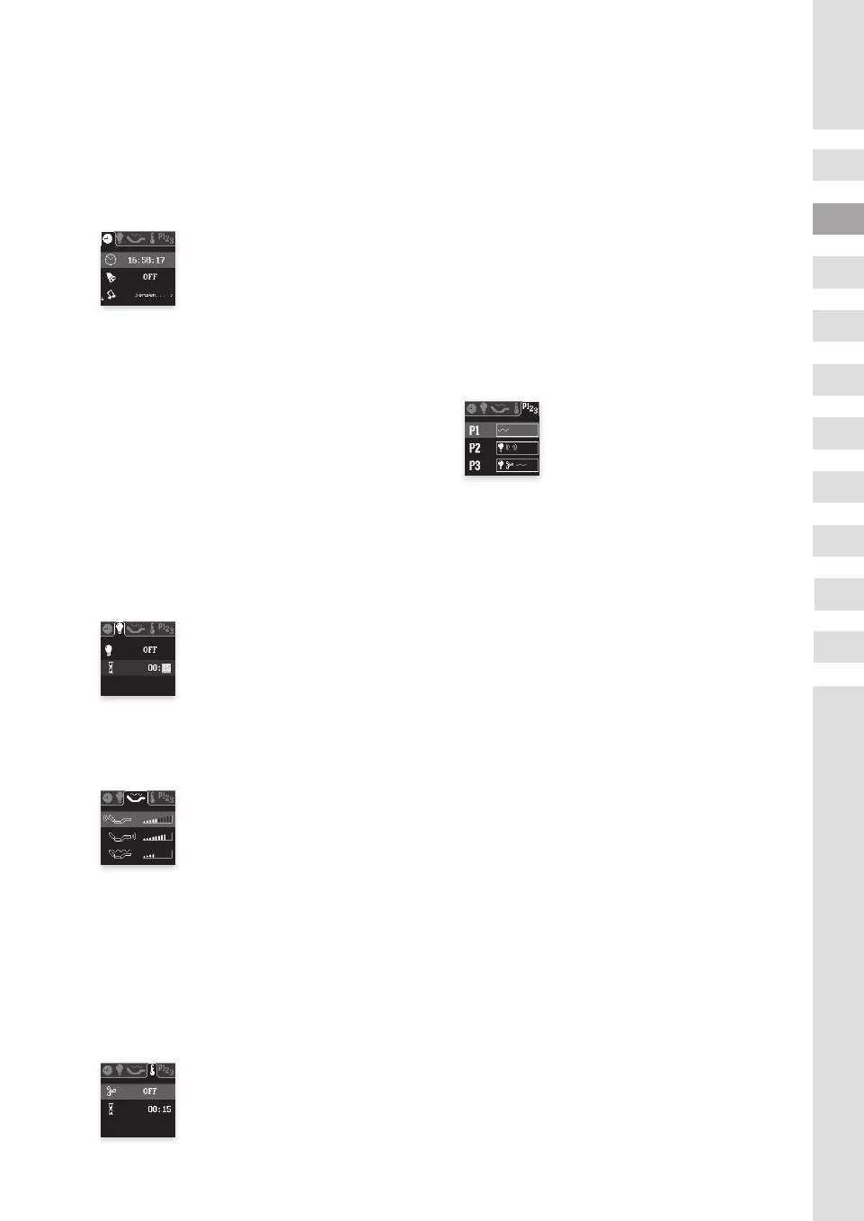 Massagefunktionen / Beleuchtungsstärken