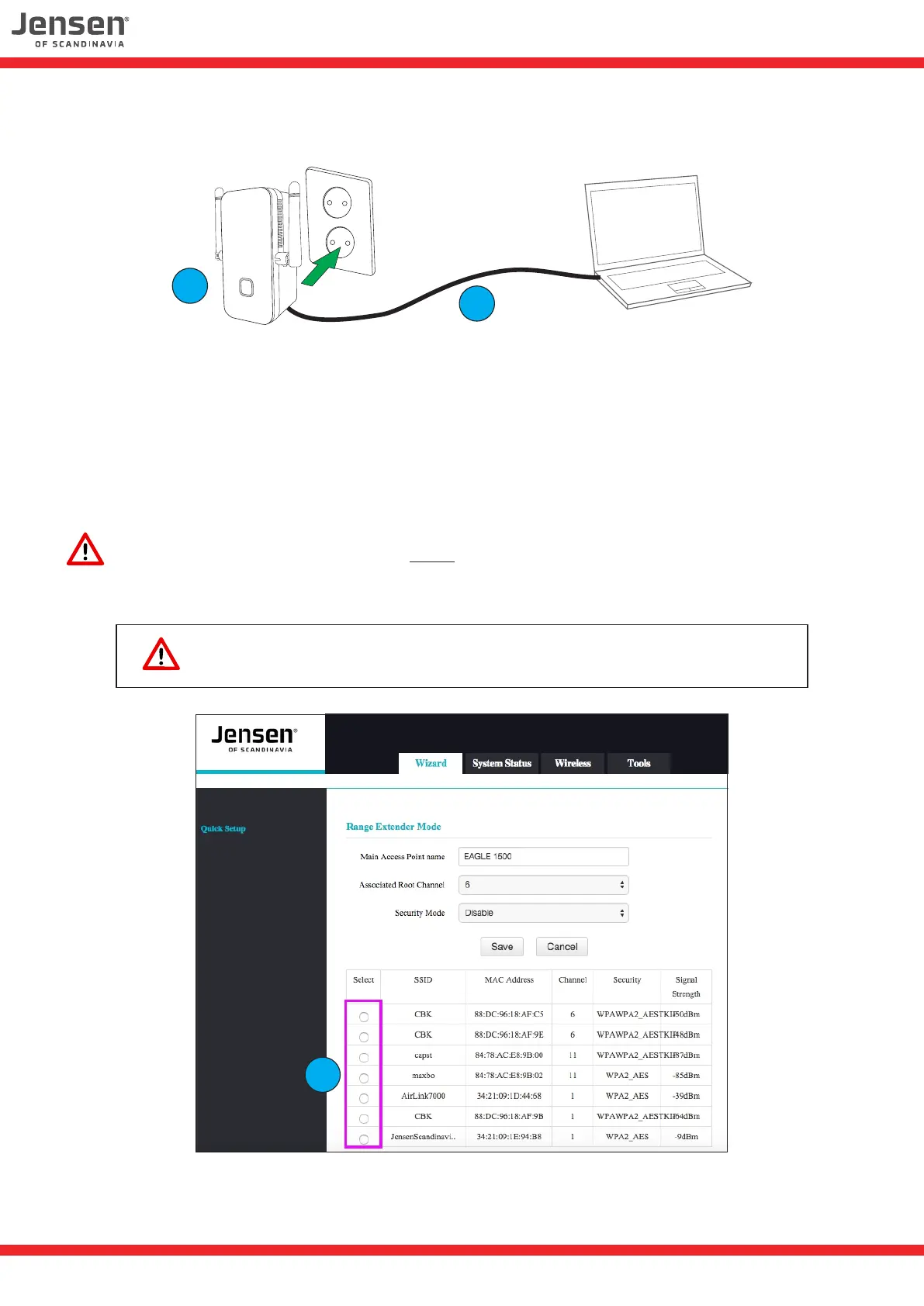 * If the address http://jensen.setup is not working you can try http://192.168.39.1