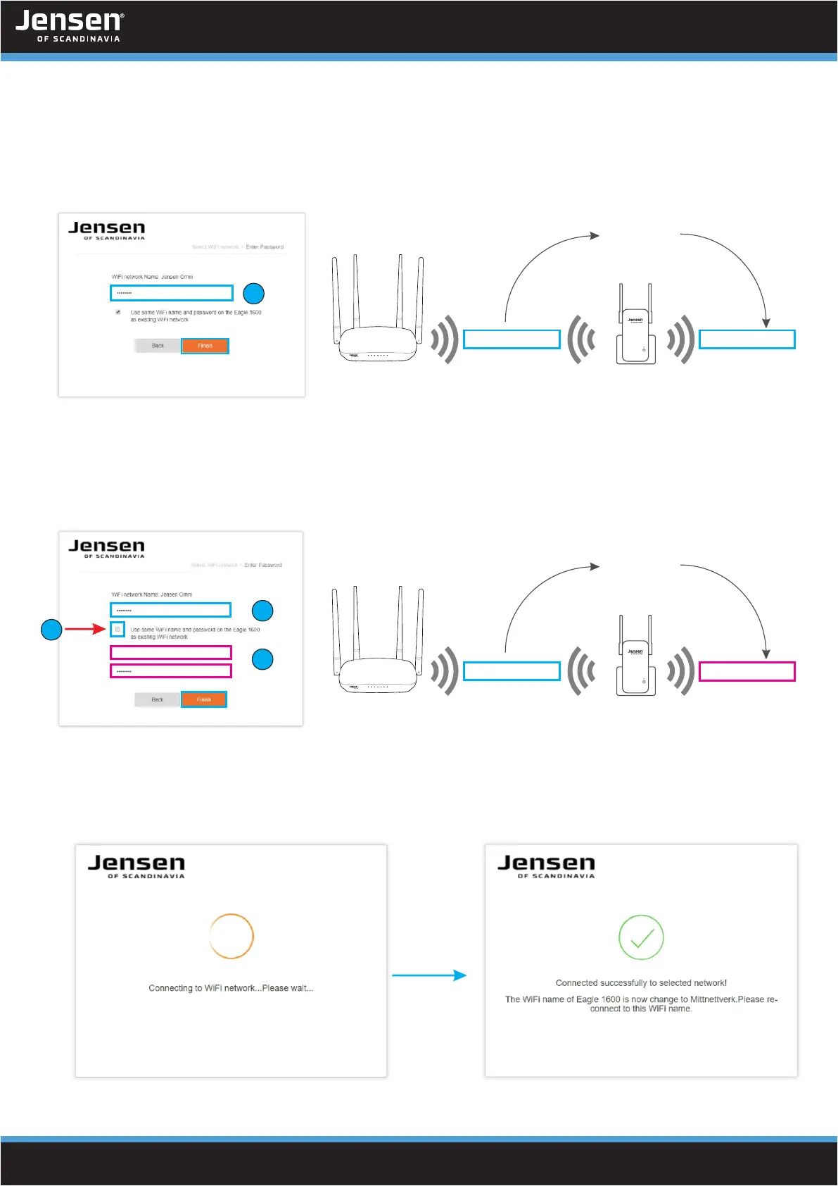 5. As defaut Eagle 1600 will use the same name and password as your exsisting wireless network