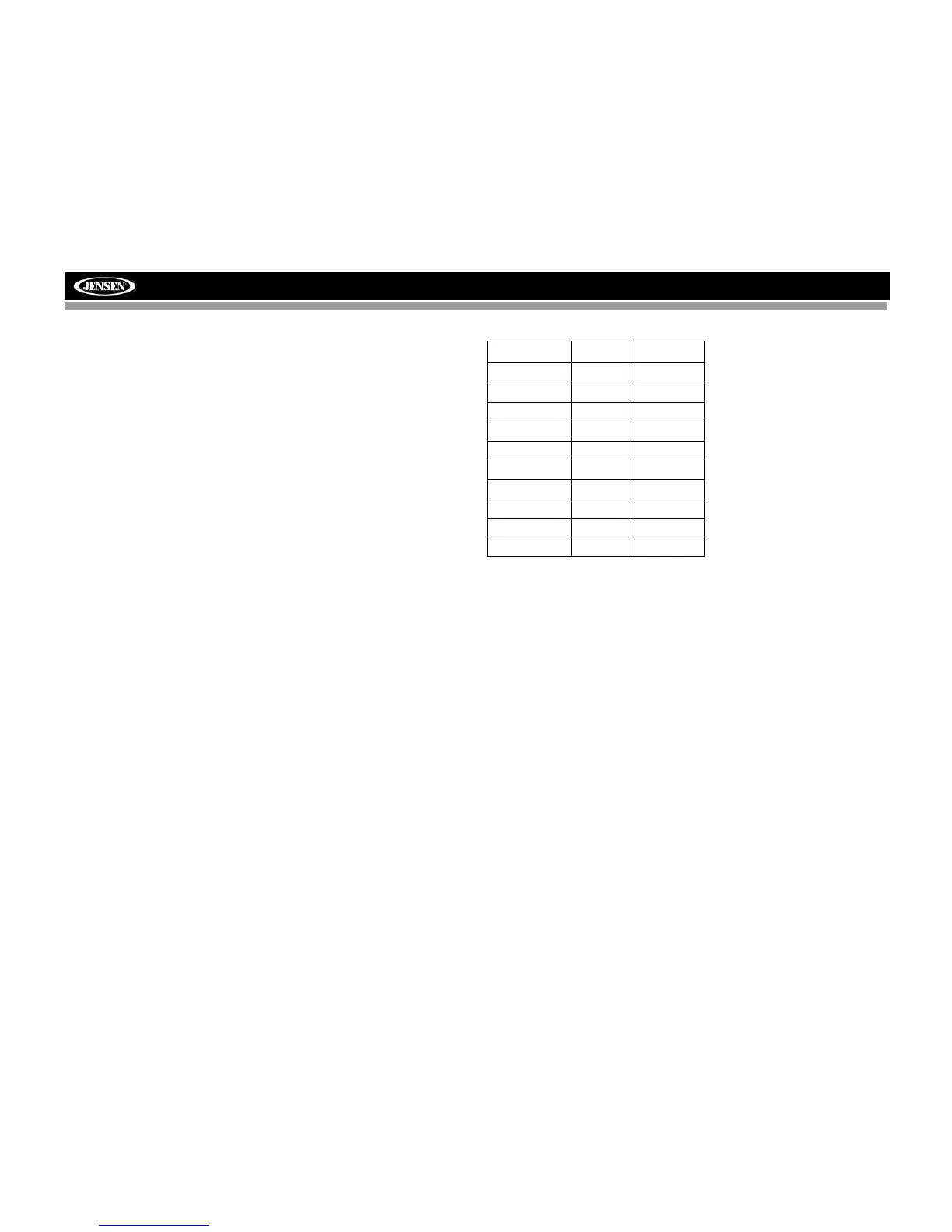 column in Table 1 to enter a track number to play. Pressing the appropriate