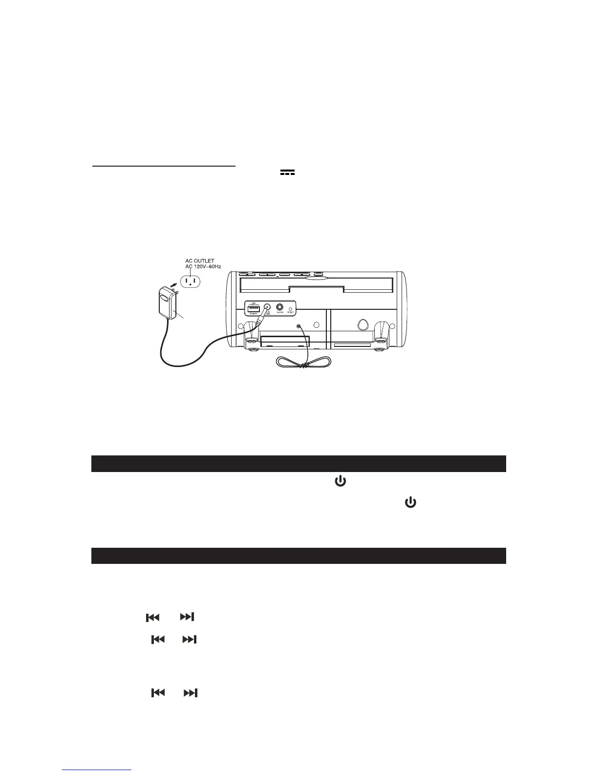 operating the main unit. To connect the AC-DC Adaptor to the unit and 120V~ 60Hz