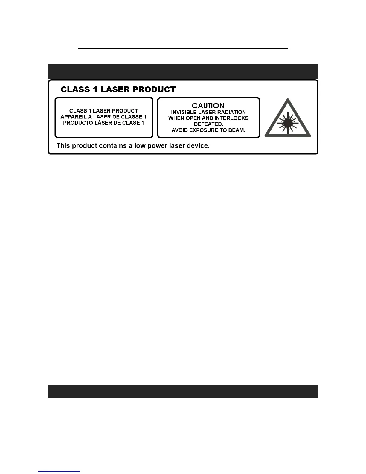 Jensen JBS-200 - Product Warnings and Compliance; Laser Safety Warnings; FCC Compliance Information