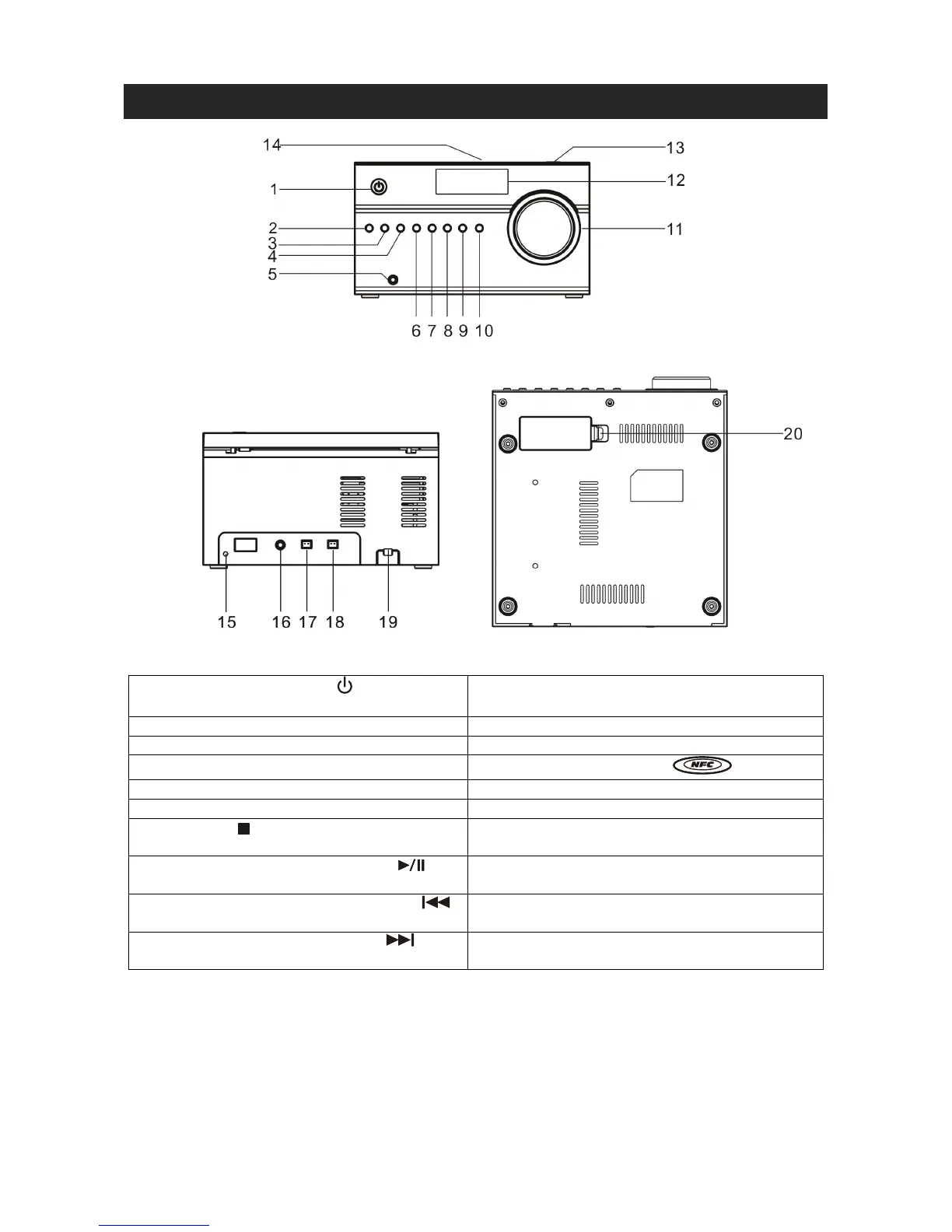 5. AUX IN JACK 15. FM WIRE ANTENNA