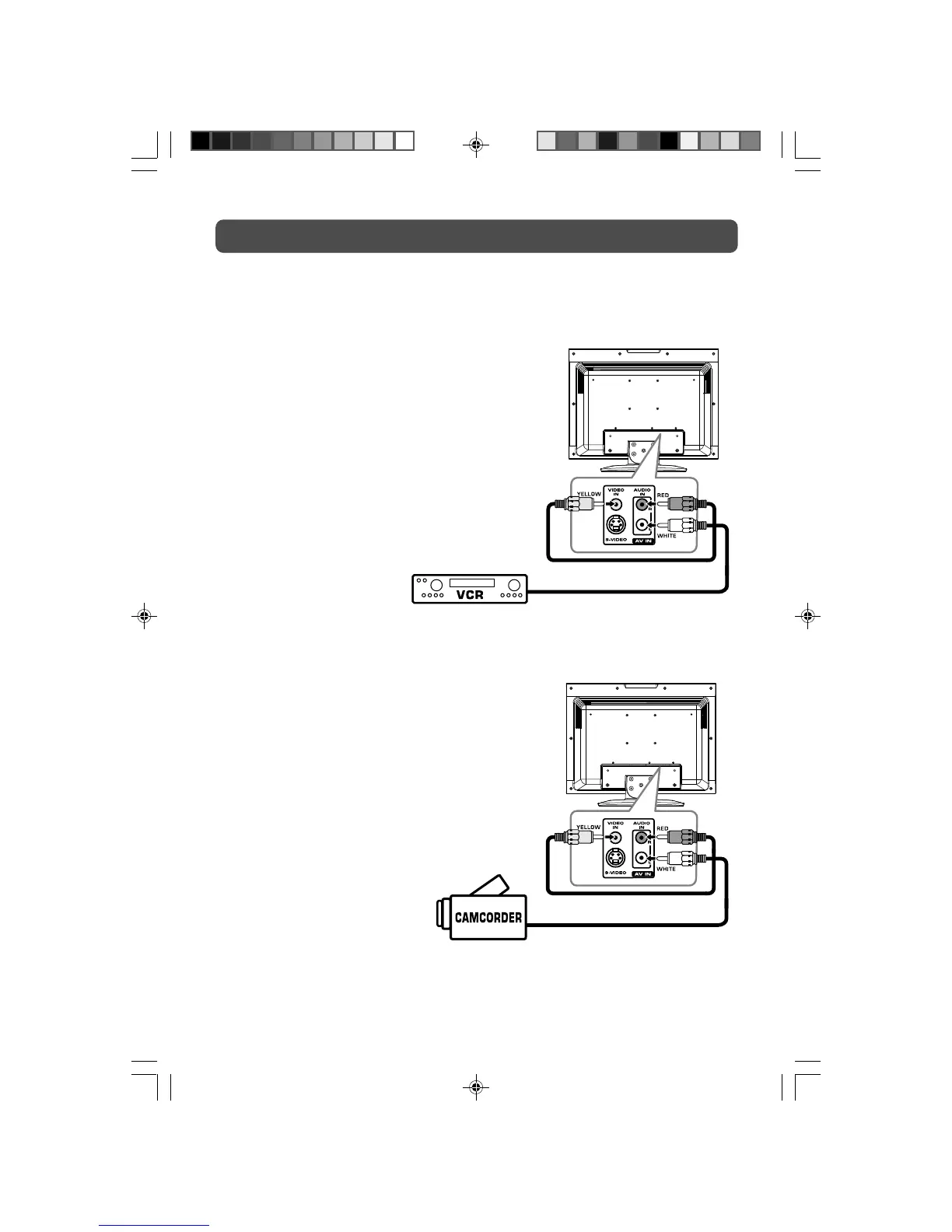 To connect to A/V devices such as a VCR or camcorder: