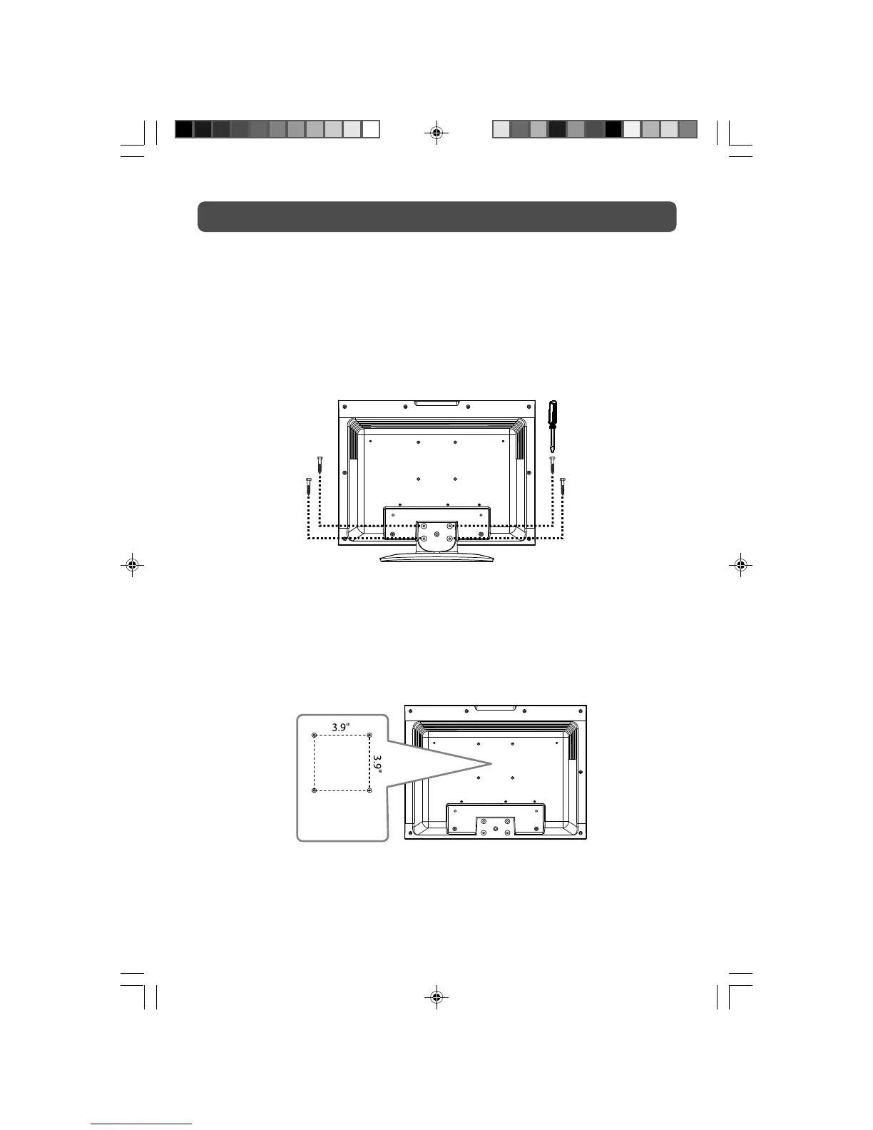 3.9” (100mm x 100mm) mounting kit designed for flat-panel TVs (sold separately). Mount this