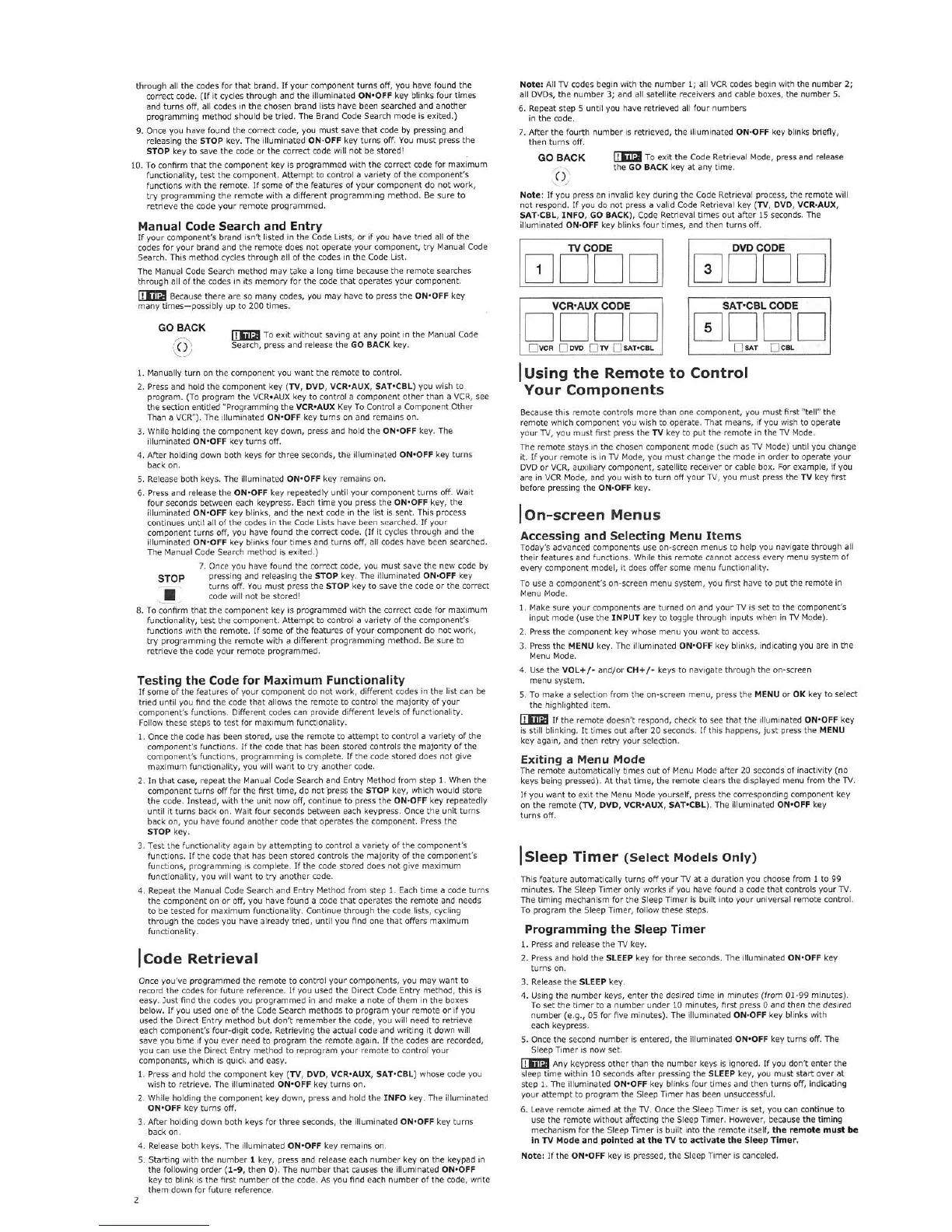 Jensen JER422 - Manual Code Search and Entry; Testing Code for Maximum Functionality; Code Retrieval and Recording; Using the Remote to Control Components