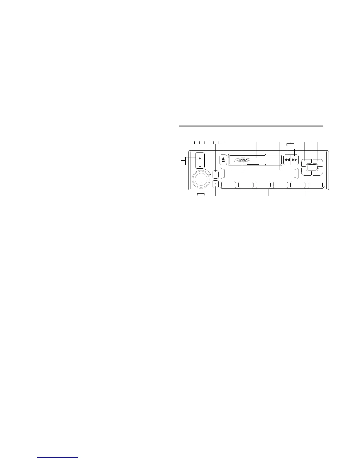 is also used in conjunction with the AUD button (3) to adjust the bass,