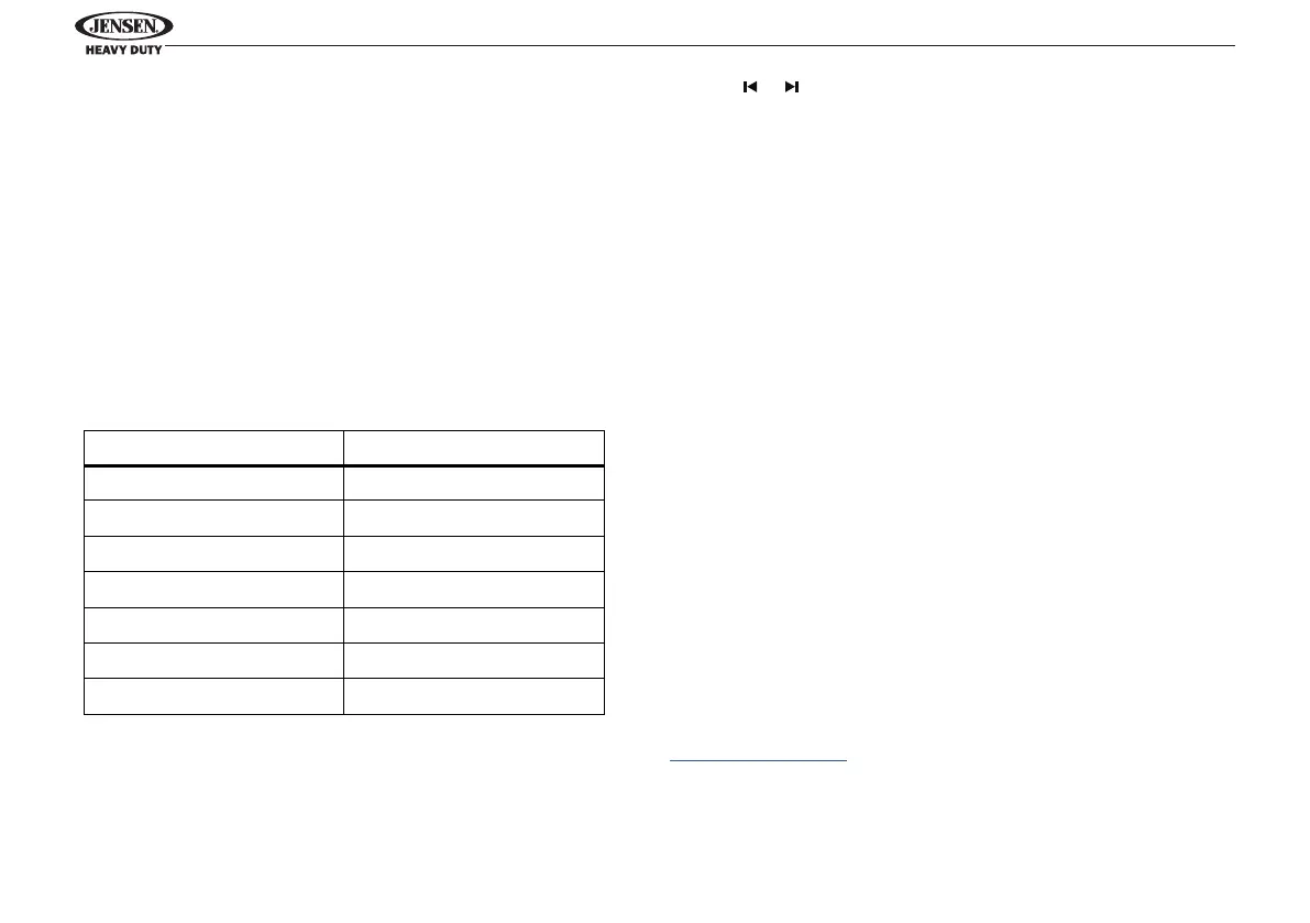 The above table also shows which preset button will access