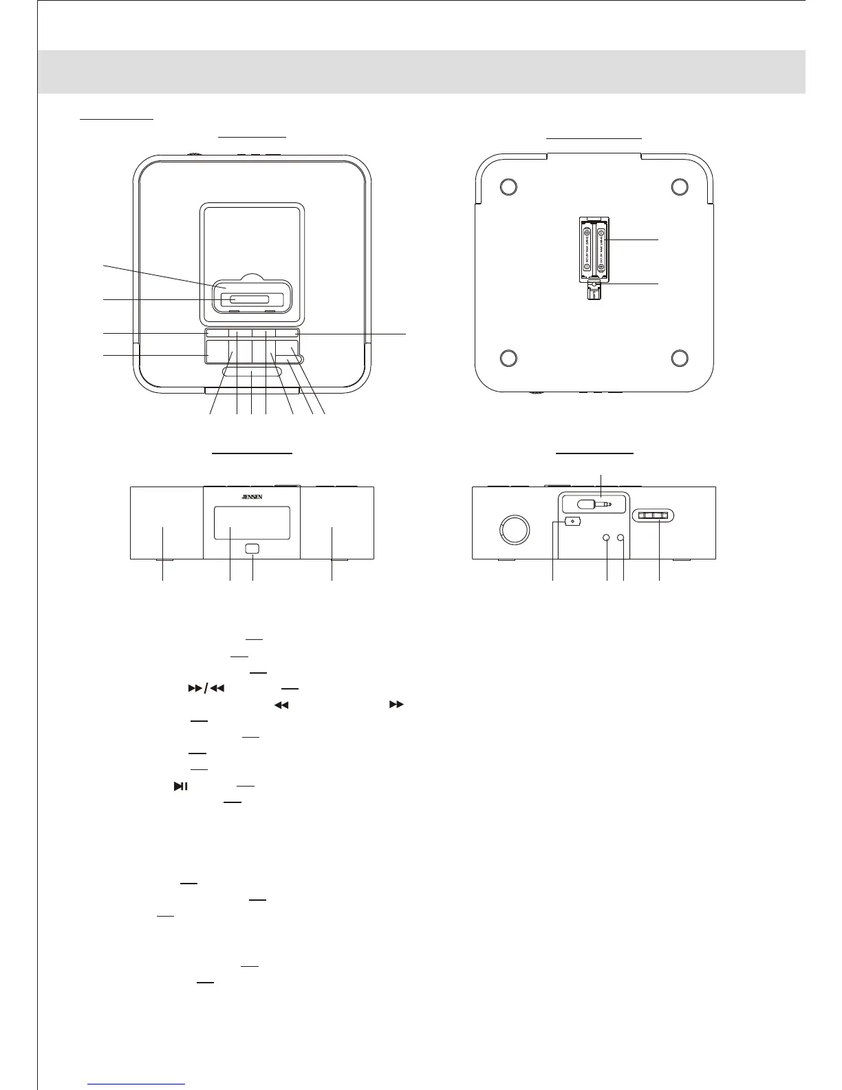 5.SNOOZE/LIGHT Button Activate the snooze function; Turn the LCD backlight on or off