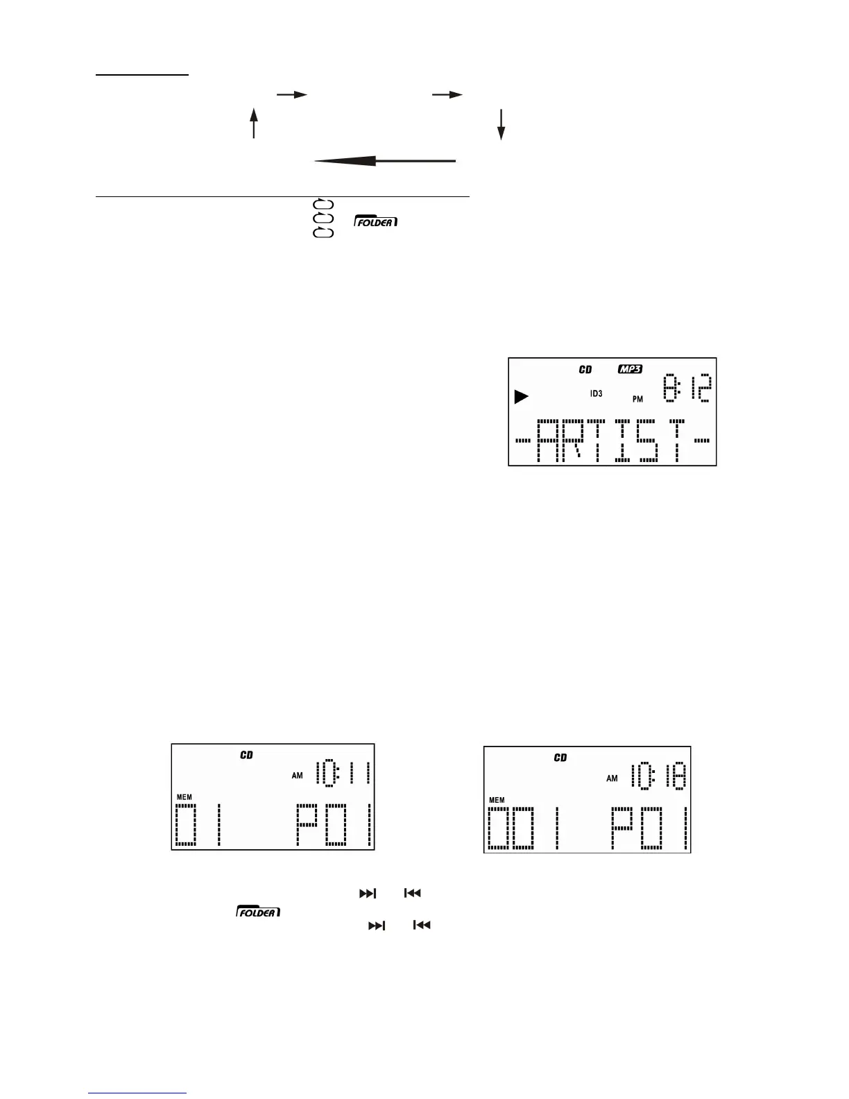 UP button, icon will appear on display. CD skip to the first track of next folder