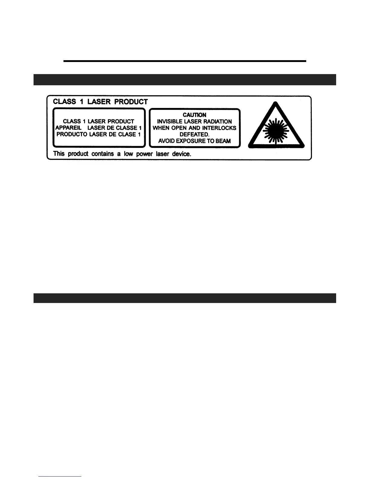 • As the laser beam used in this compact disc player is harmful to the eyes, do not attempt to disassemble the