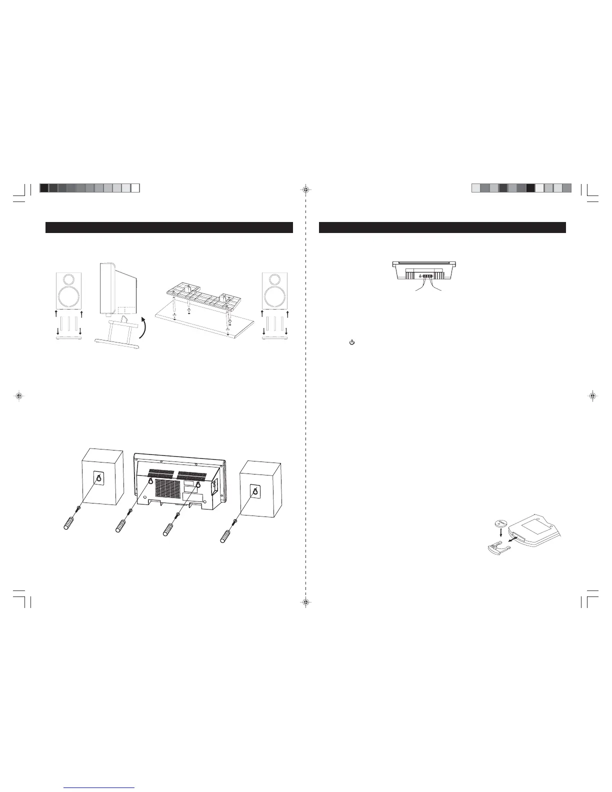 H ang the ma in unit a nd s pea ke rs to the s cre w a s indic ate d below:
