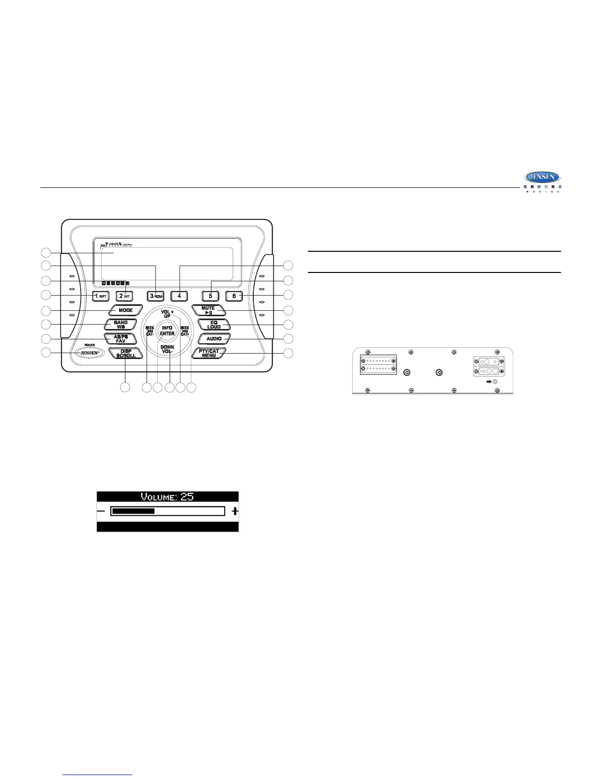 bouton VOL - (16). Le niveau de volume maximal est « 40 ». Lorsque vous ajustez le volume,