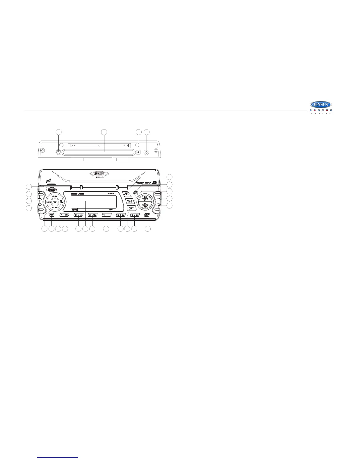 In Preset Tuning Mode, you can use the TUNE/TRK |<< / >>| buttons (18, 19) to access all 18
