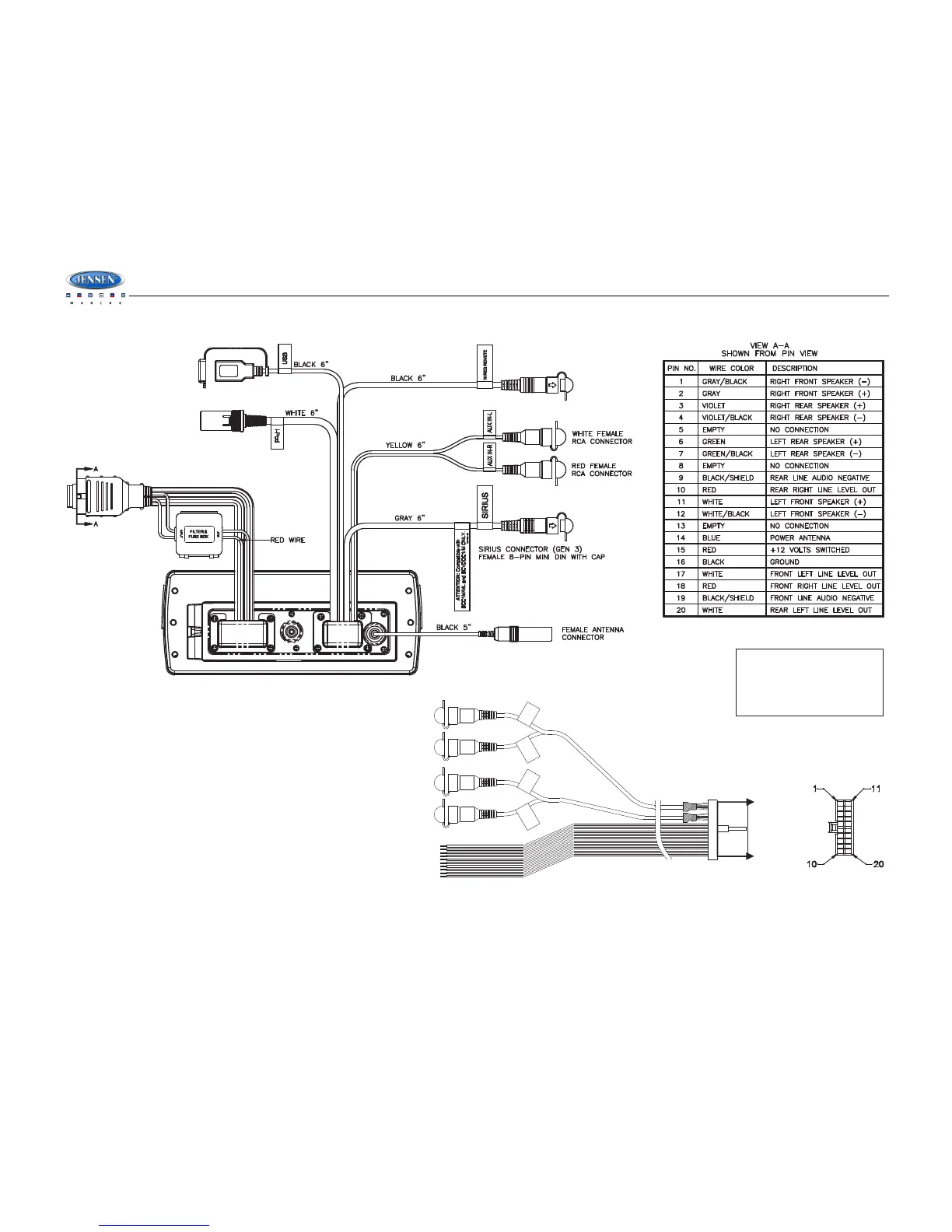 Jensen JMS7010 - Wiring Diagram and Connections; Wiring Diagram and Pinout