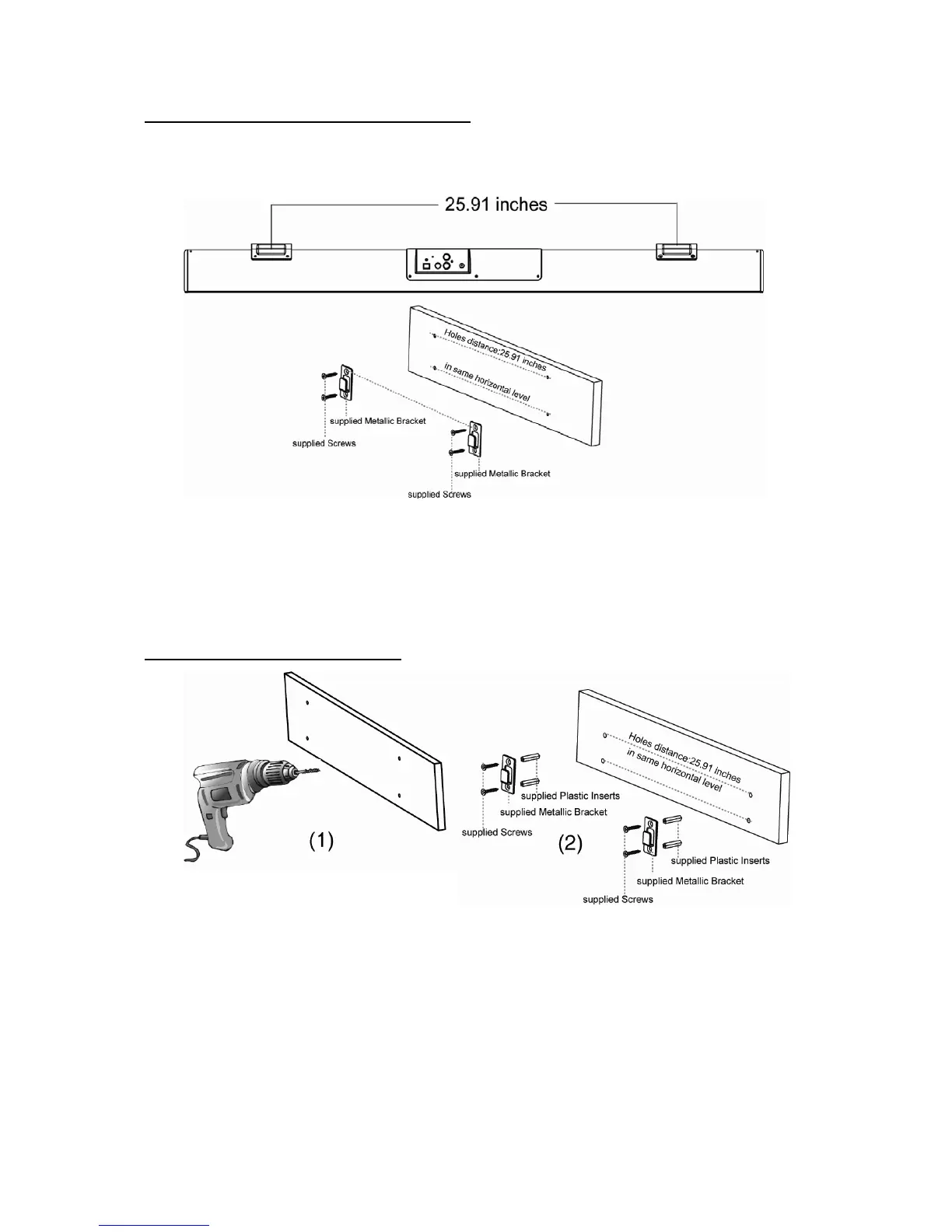2. Attach the Metallic Brackets to the wall by screwing the supplied flat head screws