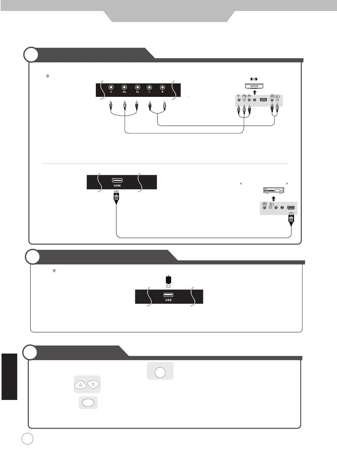 2. Utiliser pour se déplacer à YPbPr. Si HDMI a été raccordé, sélectionner HDMI.