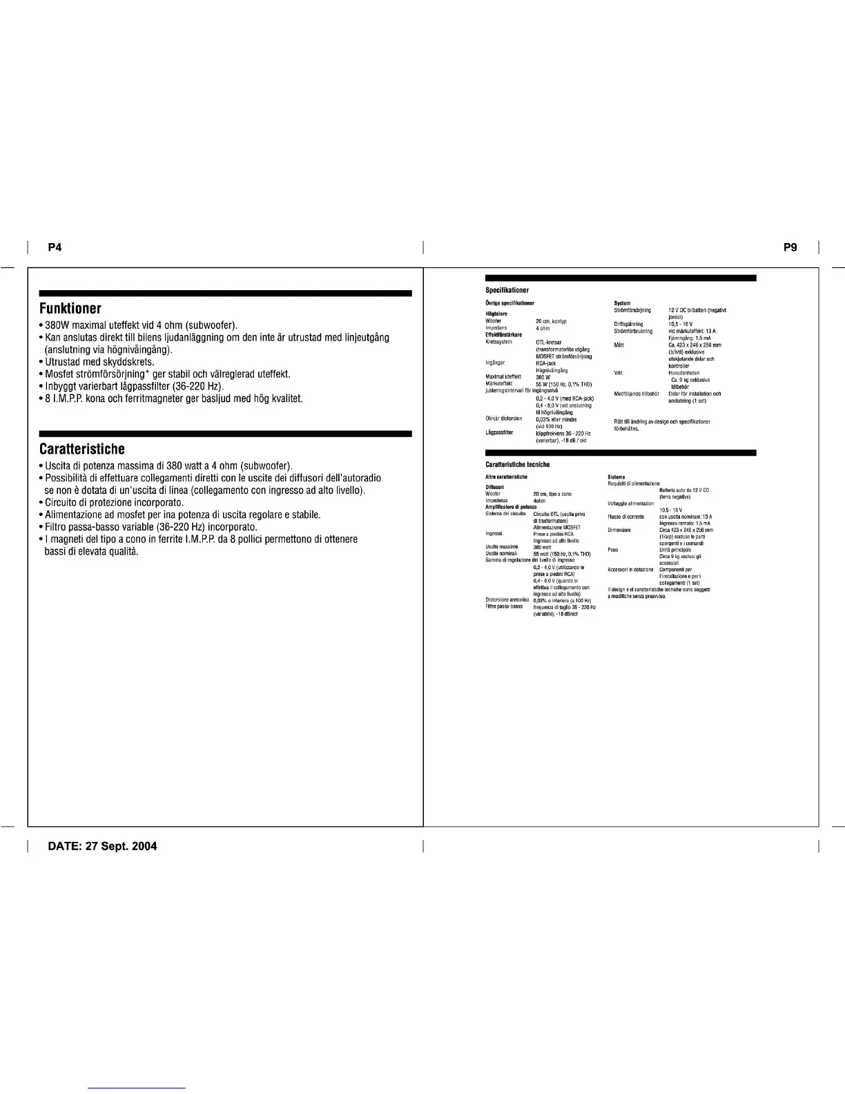 Jensen JXA8BA2 - Functions; 380 W maximal uteffekt; Utrustad med skyddskrets; Mosfet strömförsörjning